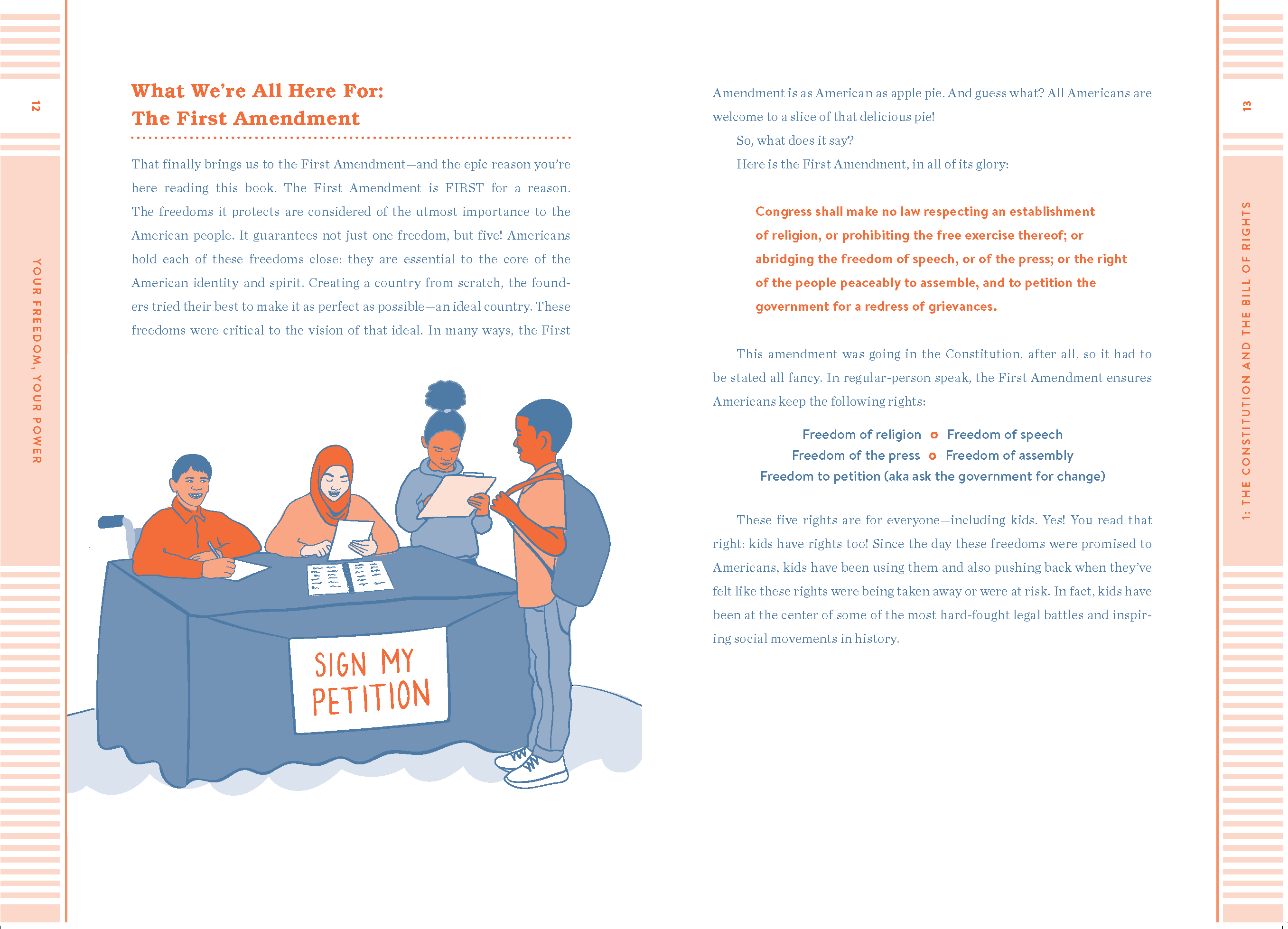 freedom of assembly, and the right to petition the government. If the First Amendment is everywhere in their lives, shouldn’t kids know more about it? Yes!
