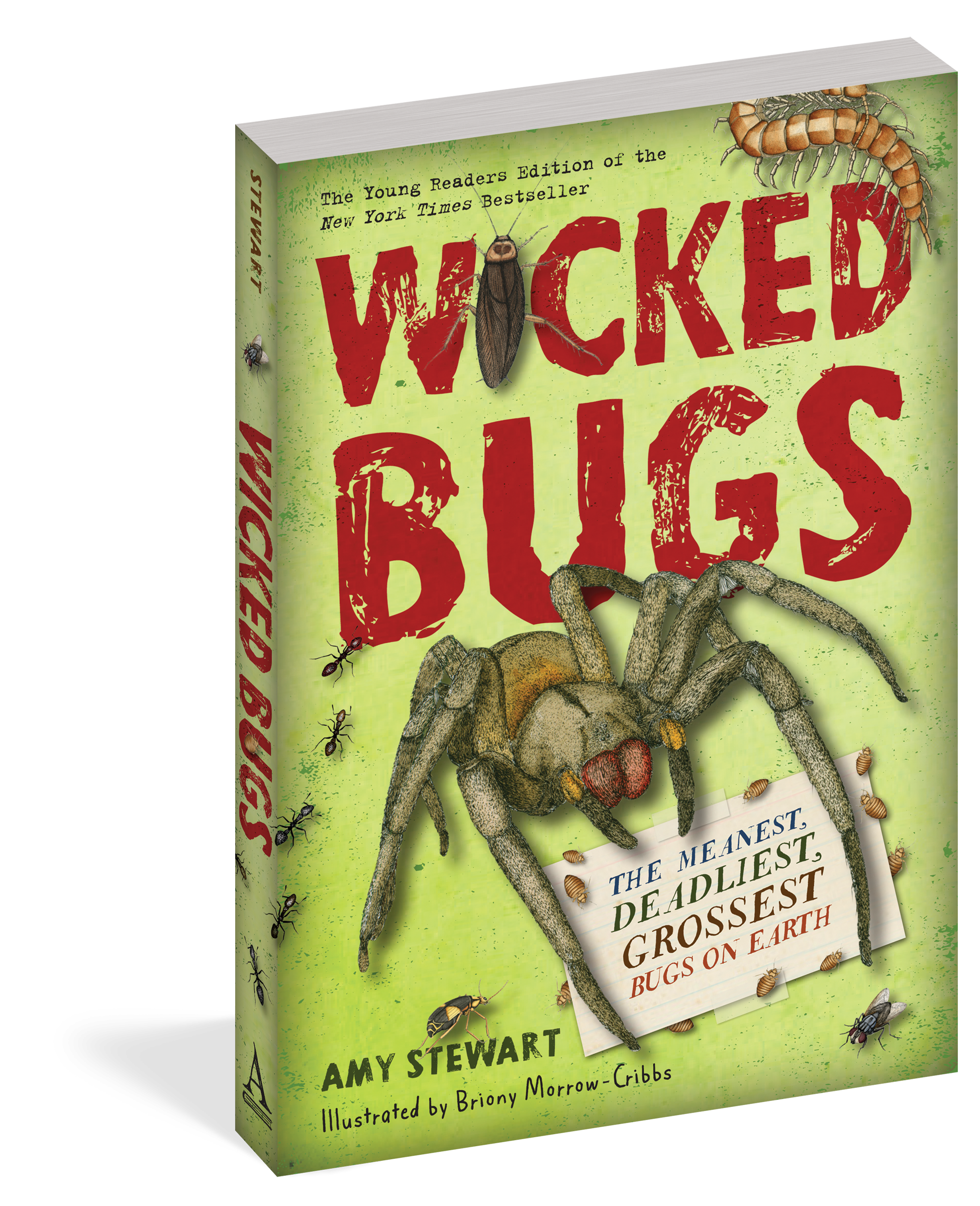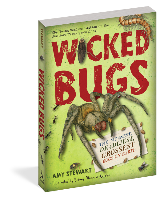 Did you know there are zombie bugs that not only eat other bugs but also inhabit and control their bodies? There’s even a wasp that delivers a perfectly-placed sting in a cockroach’s brain and then leads the roach around by its antennae — like a dog on a leash. Scorpions glow in ultraviolet light. Lots of bugs dine on corpses. And if you want to know how much it hurts to get stung by a bullet ant (hint: it really, really hurts), you can consult the Schmidt Sting Pain Index. It ranks the pain produced by ants and other stinging creatures. How does it work? Dr. Schmidt, the scientist who created it, voluntarily subjected himself to the stings of 150 species.Organized into thematic categories (Everyday Dangers, Unwelcome Invaders, Destructive Pests, and Terrible Threats) and featuring full-color illustrations by Briony Morrow-Cribbs, Wicked Bugs is an educational and creepy-cool guide to the worst of the worst of insects, arachnids, and other arthropods. This is the young readers adaptation of Amy Stewart’s bestselling book for adult readers.