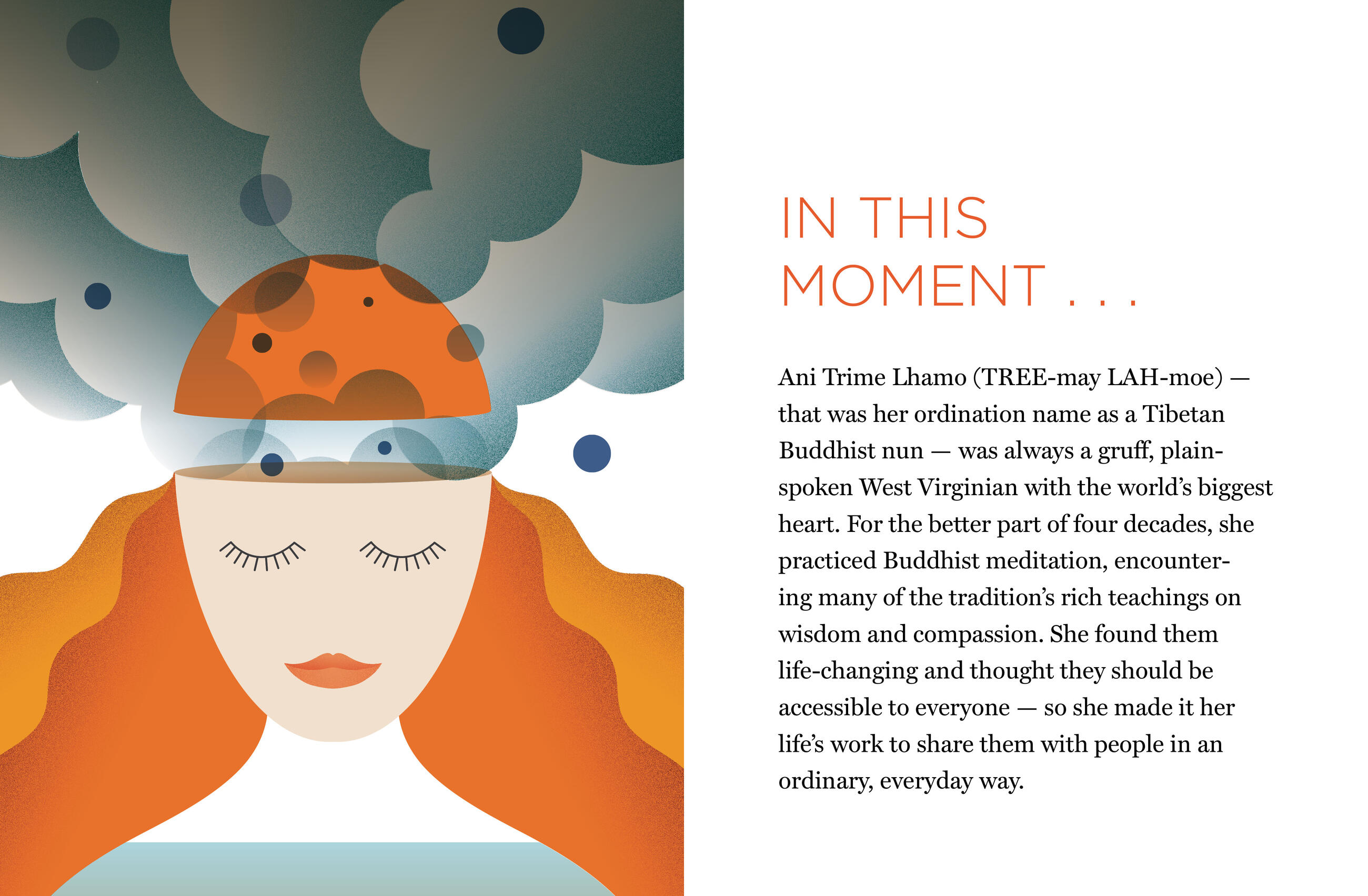 “A succinct and eloquent guide for living mindfully. The rich variety of drawings offers a delightful counterpoint to Ani Trime’s wise, direct, and tender teachings. This beautiful little book is like a kind companion giving much needed encouragement in turbulent times.” — Meredith Monk, composer, director, and performer