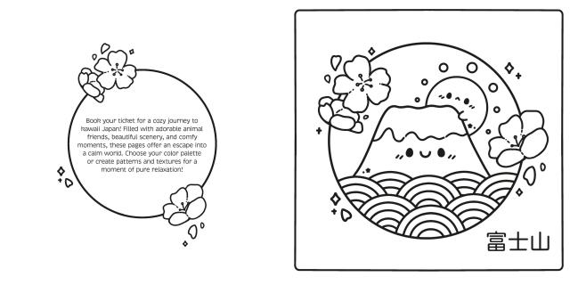 Step into the serene and inviting world of Kawaii Japan! This book features super cute animals enjoying peaceful moments from traditional tea to strolling streets lined with cherry blossom trees. Discover scenes of cozy homes, bustling markets, and quiet parks. Get comfy, grab your favorite colors, and bring these gentle, heartwarming Japanese-inspired scenes to life!