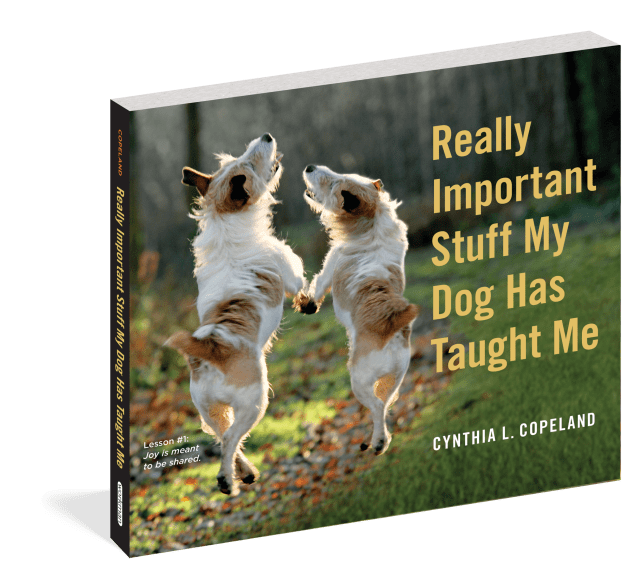 Cynthia L. Copeland has a gift for discovering those sorts of simple, timeless lessons. She did it when her children were younger with Really Important Stuff My Kids Have Taught Me. Now she distills all-new wisdom from her lifelong love of dogs. Really Important Stuff My Dog Has Taught Me is tender, funny, warm, and utterly inspiring. Pairing an irresistible photograph with just the right sentiment, every page delivers a life lesson that appeals as much to our hearts as our minds. It reminds us again and again of what’s important, like love: “Be there when others need you.” Compassion: “Even the smallest act of kindness matters.” Perseverance: “Keep going until you find your way home.” A healthy sense of self: “Make it squeak until someone pays attention.” Living in the present moment: “Scratch where it itches, when it itches.” And that happiness is a choice: “Leap higher than you have to.”