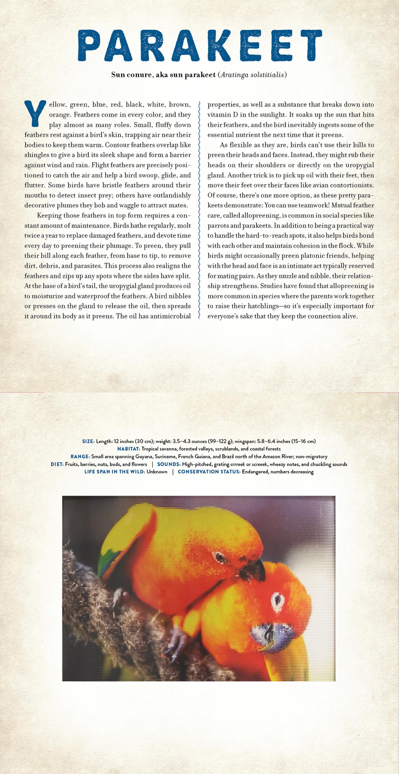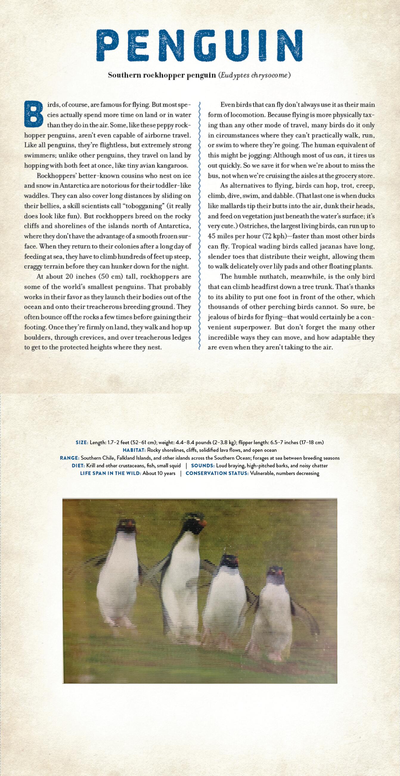 The opening essay focuses on bird behaviors—the weird, and the surprising. The profile accompanying each animal image includes information on each species. It’s an aviary that you can hold in your hands!