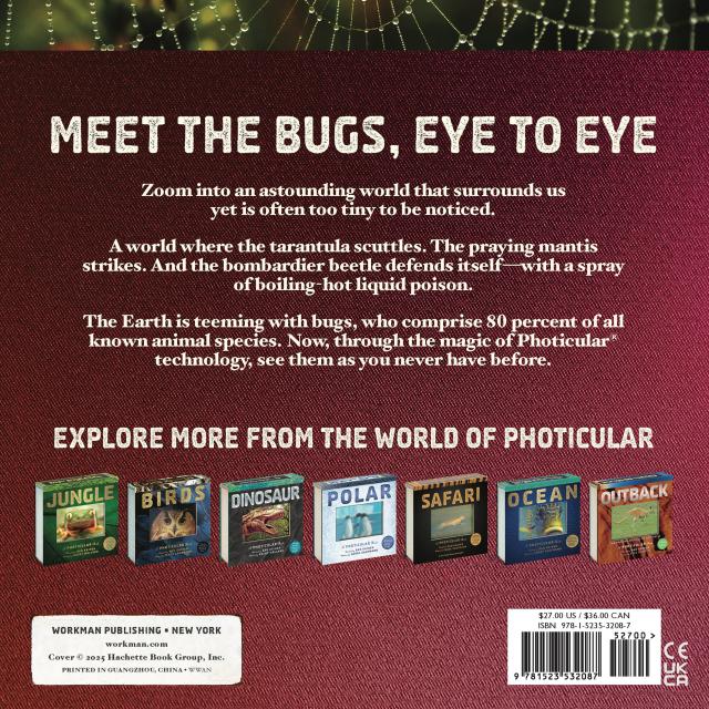 Using Photicular technology—an innovative lenticular-based technology that uses precision sliding lenses and four-color video imagery—each image is like a 3D movie on the page, delivering a rich, fluid, immersive visual experience, allowing Bugs to zoom in on the tiny world of insects.