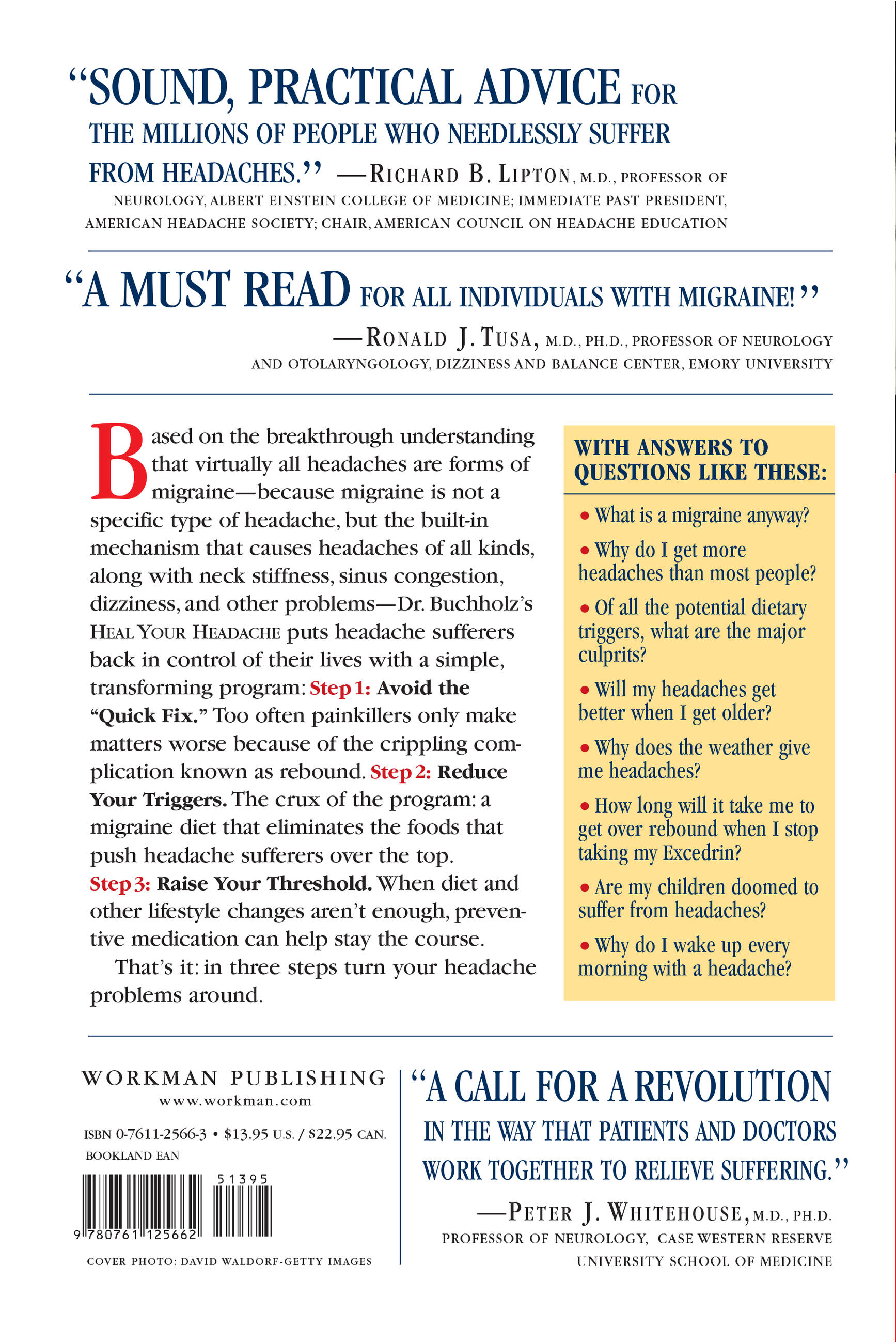 Based on the breakthrough understanding that virtually all headaches are forms of migraine—because migraine is not a specific type of headache, but the built-in mechanism that causes headaches of all kinds, along with neck stiffness, sinus congestion, dizziness, and other problems—Dr. Buchholz’s Heal Your Headache offers a simple, transforming program.
