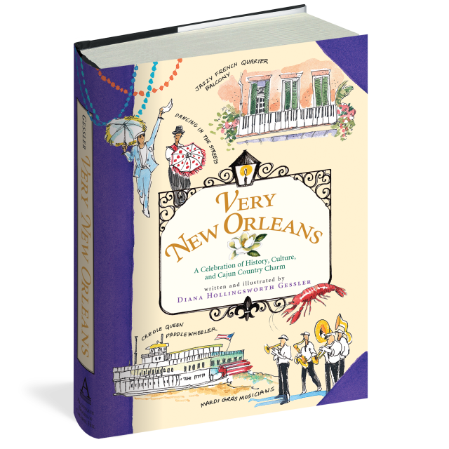 In vibrant watercolors and detailed sketches, artist Diana Gessler captures the unique charm that makes New Orleans alluring: Mardi Gras, the Cabildo, Jackson Square, the Court of the Two Sisters, St. Louis Cemetery, the Jazz Festival, the River Road Plantations, the Cajun country, sumptuous Creole cuisine, and Audubon’s Aquarium of the Americas. In fascinating detail—on everything from the making of Mardi Gras, Napolean’s death mask, the city’s inspired architectural and garden designs, and favorite author hangouts to famous New Orleanians and Aunt Sally’s Creole pralines—Very New Orleans celebrates the city, the Cajun country, the people, and our history