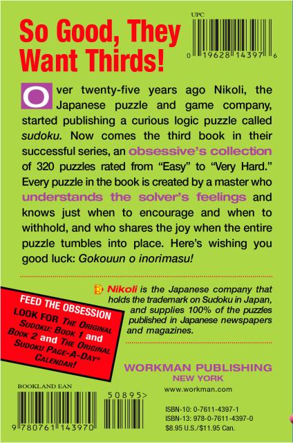 An obsessive’s collection, More Original Sudoku features over 300 puzzles, all in a chunky, easy-to-carry format (it even fits into a standard jeans-size back pocket). An introduction shows how to solve the puzzles at various levels of difficulty, and it includes a tutorial on how to create your own hand-made Sudoku.