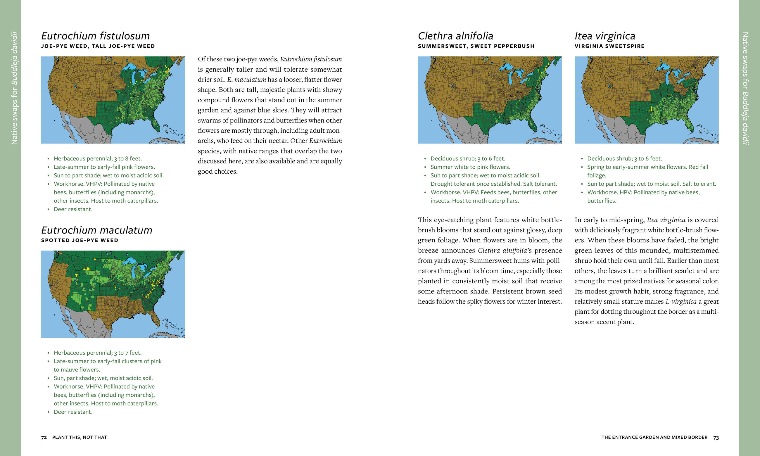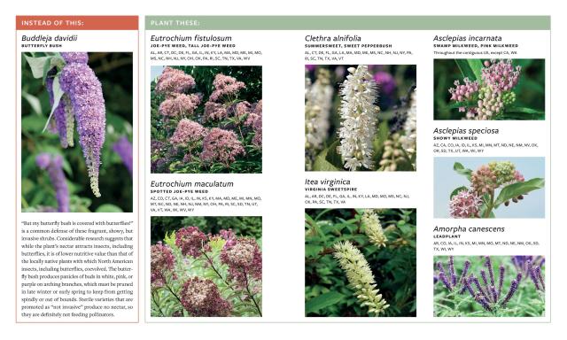 Plant This, Not That considers some of the most common non-native (and often, invasive) plants in North American gardens and suggests substitutions for more beneficial and equally beautiful natives. Each native plant listing includes a full-color photo, along with sun, water, and soil requirements; ornamental features (including bloom time and color and whether the plant has berries, fruit, and/or fall color); and the pollinators known to depend on and support that plant. Accompanying maps show every plant’s locally native range, down to the county level. The book also features an overview of how native plants contribute to our local ecosystems, where to shop for them, advice on maintaining a mostly native garden, and resources to learn more about native planting.