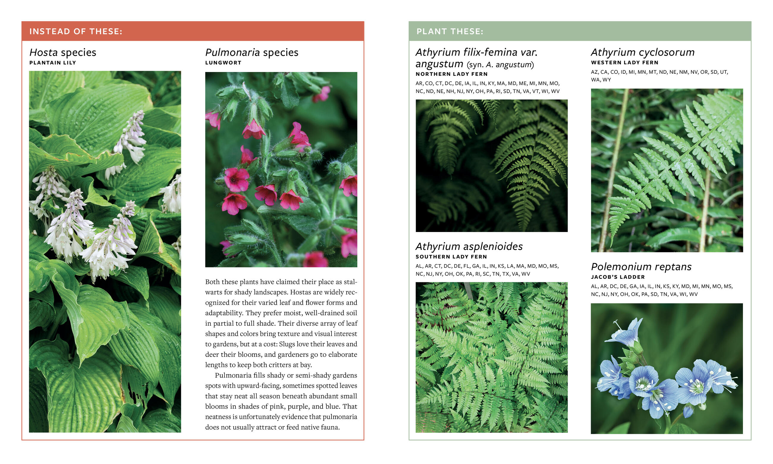 A comprehensive guide to creating a native plant garden anywhere in the contiguous United States, with an easy-to-follow, “this, not that” format.