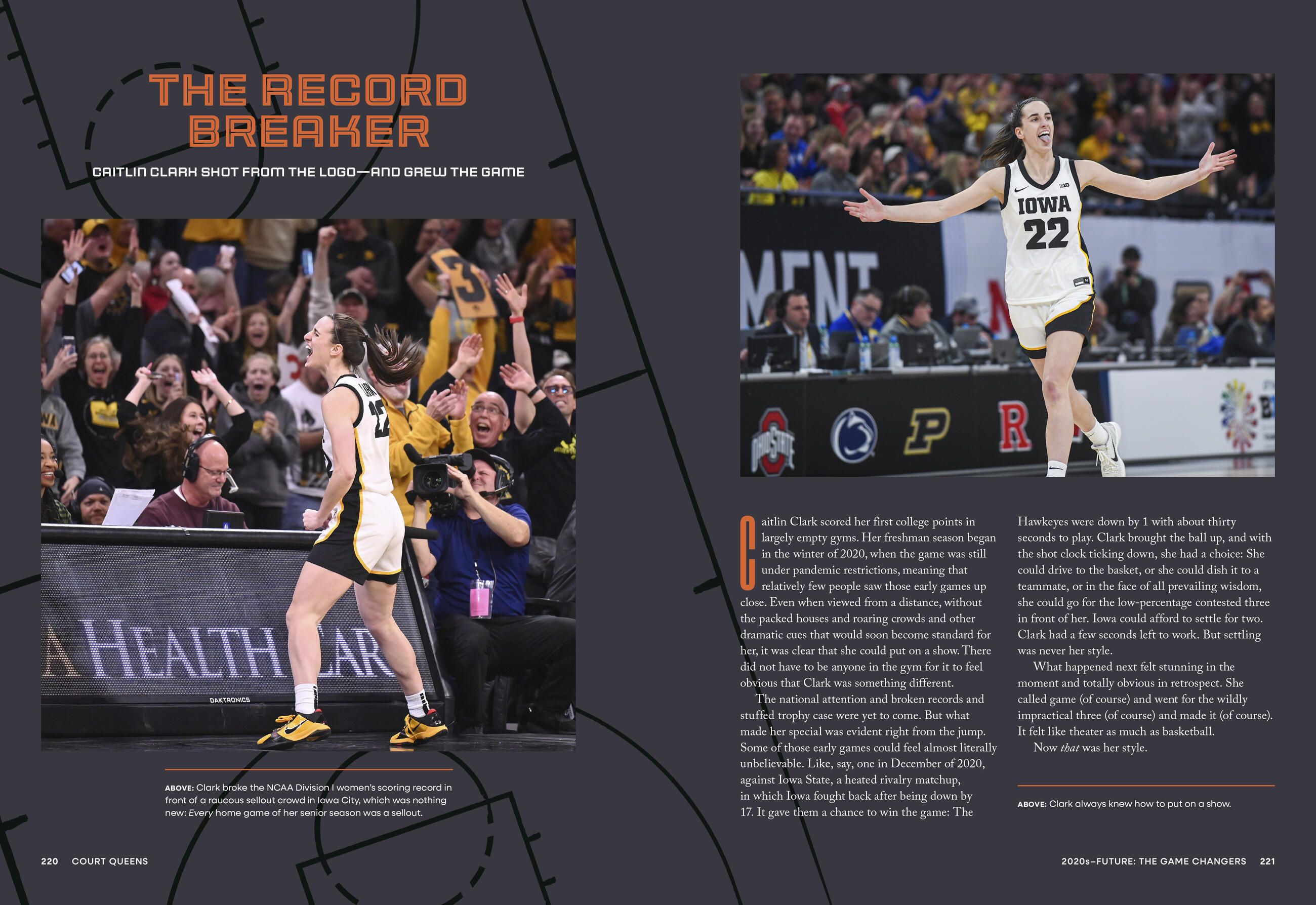 • “As the popularity of women’s basketball reaches new heights, Court Queens spotlights the legends who laid the groundwork, the fixtures in the fight to carve out opportunity, and today’s phenoms who are carrying the torch. Court Queens is an essential history and a celebration of the game’s unstoppable future.”