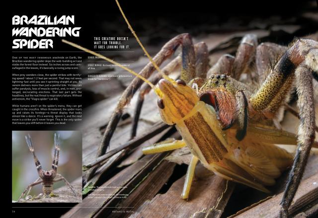 Jewel wasps that stab and zombify prey, then bury their victims alive as a living pantry for their hatching eggs. Bronzeback snakes that literally fly through the jungle air to make their attack. Sandbox trees that blast poisonous, shrapnel-like bark at up to 160 mph. With sections separated ecosystems such as forests, savannas, and oceans—plus a face-melting section on natural phenomena like volcanic lightning and avalanches—this is anything but your touchy-feely nature book.