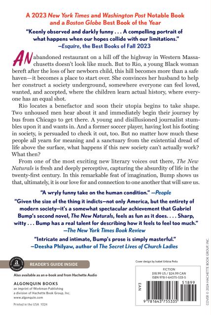 “Gabriel Bump's brilliant and surprising novel The New Naturals takes us inside a utopian world and, even more deeply and wondrously, inside the souls of an impressive array of characters. Through them, Bump holds up a mirror to our own grief, longings, and rage in the face of a cruel, crumbling society. Intricate and intimate, Bump's prose is simply masterful.”Deesha Philyaw, author of The Secret Lives of Church Ladies