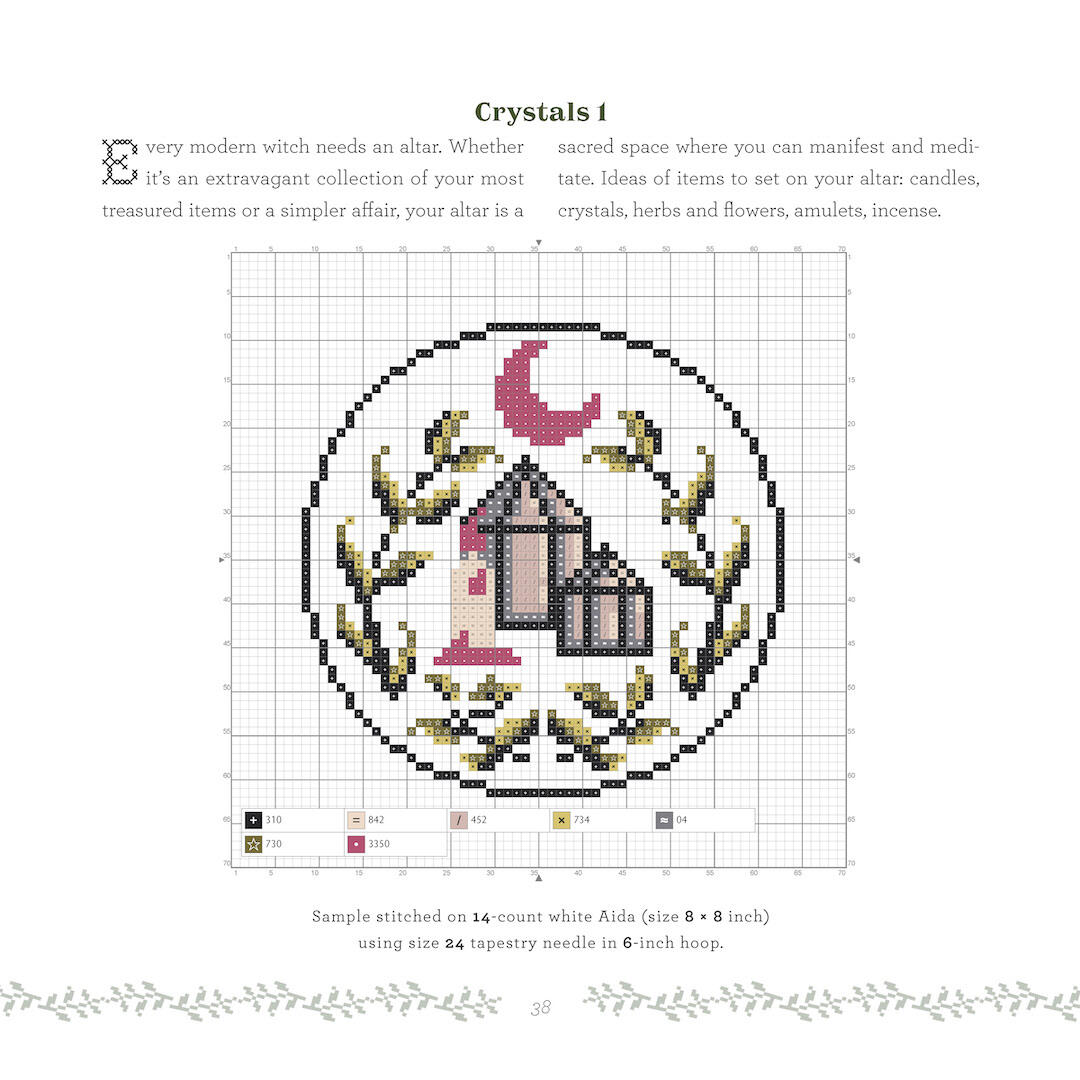 The world of magic offers us a way to find patterns and meaning in the mysteries of the everyday, whether that means mapping the movement of the stars and planets onto our lives through astrology or focusing our thoughts and intentions with the symbolism of crystals and candles. And cross-stitch is an embroidery art that’s accessible, orderly, and easy to learn: With a little practice, anyone can bring the patterns to life.