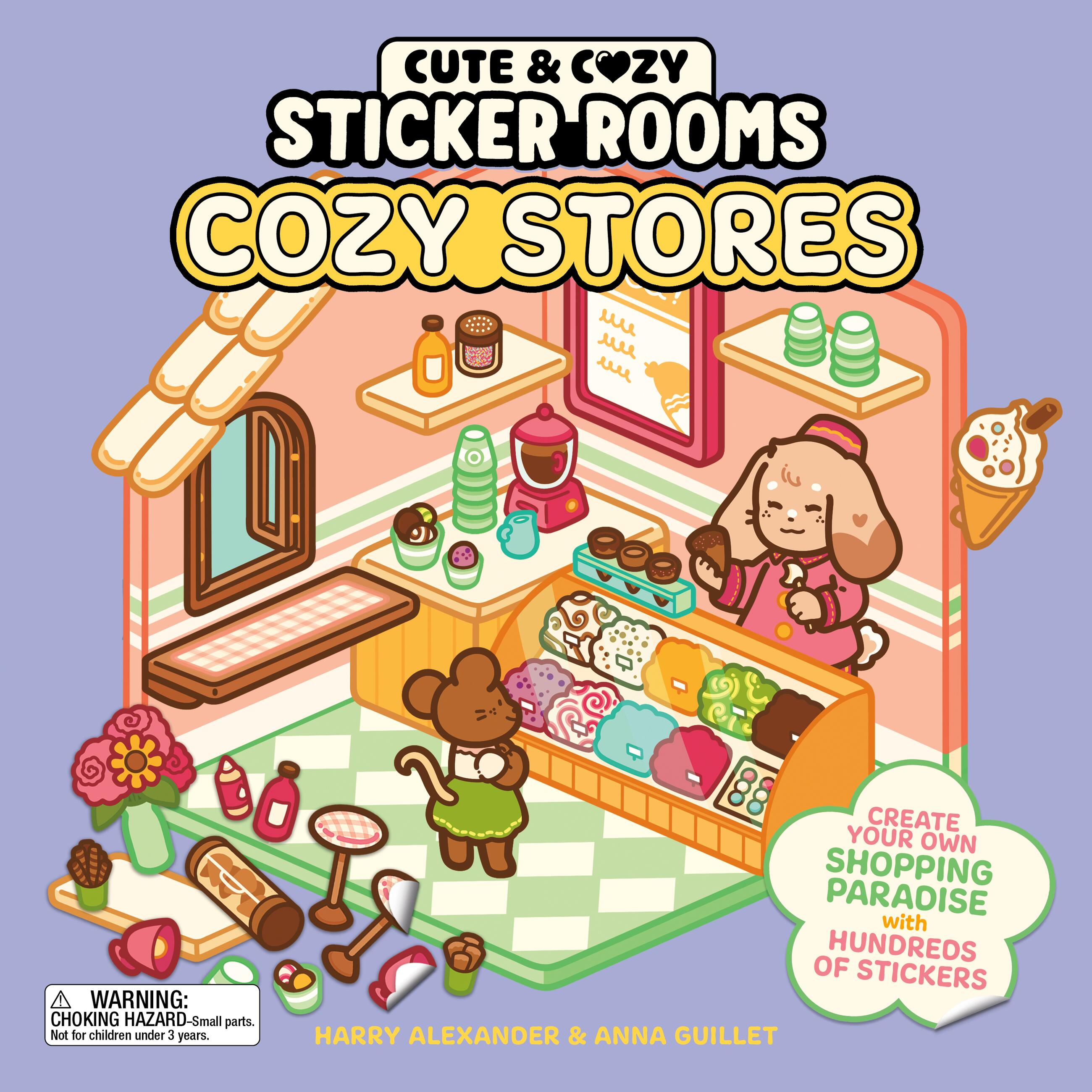 Create your very own charming thoroughfare of bakeries, bookshops, and boutiques with over 200 stickers in this delightful and soothing sticker activity book. In Cute and Cozy Sticker Rooms Cozy Stores, you can be the interior decorator of your own comfy shopping spree. Choose any stickers you like to design and decorate a homeware showroom fit for a magazine; a dressmaker’s wonderland of a craft and sewing store; a florist full of soothing plants and sweet-smelling flowers; and more!