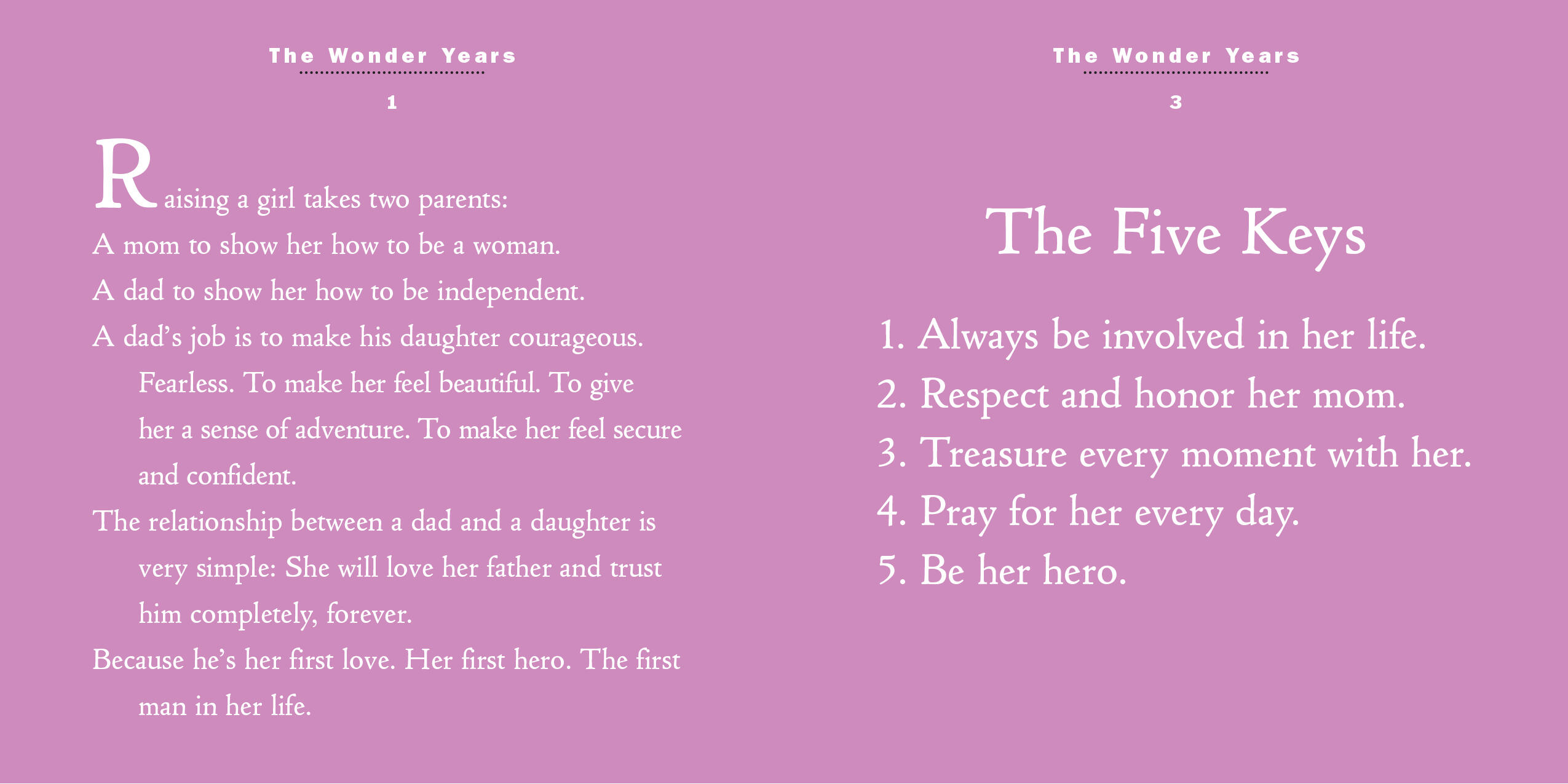 Share her wonder. Dance with her always. Teach her to be courageous, fearless, confident in any situation. Anchored in values and filled with clear and simple words of wisdom, this small book speaks large truths about raising a daughter. About respect and trust. About unicorns and sports and boys. And about the joys and responsibilities that come with being the first man in her life.