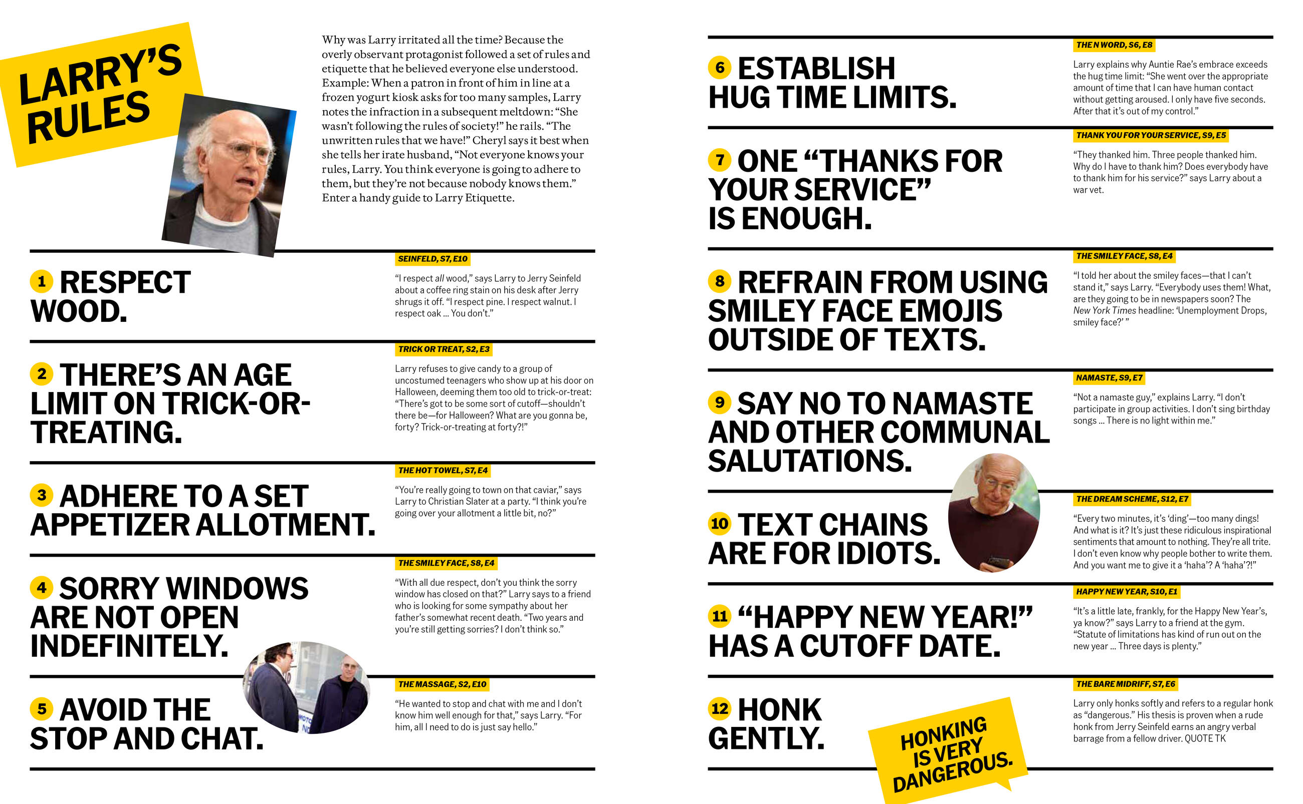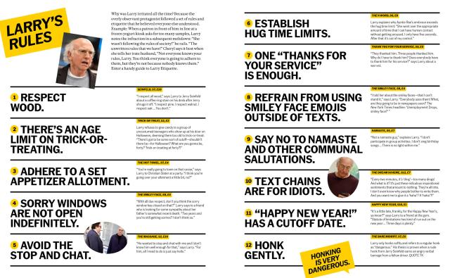 • A glossary of Larry David-isms including stop-and-chat, chat-and-cut, pants tent, pig parker, and more