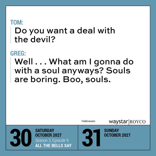 - A COLLECTION OF SUCCESSION‘S FUNNIEST, CRAZIEST, MOST OUTRAGEOUS QUOTES: Hostile takeovers, sibling rivalries, major deals, cutting call-outs, hilarious insults—all in a day’s work at Waystar RoyCo. Each day brings you another of the show’s best moments, from Kendall’s “L to the OG” rap to Tom’s thoughts on “ludicrously capacious” bags and more.