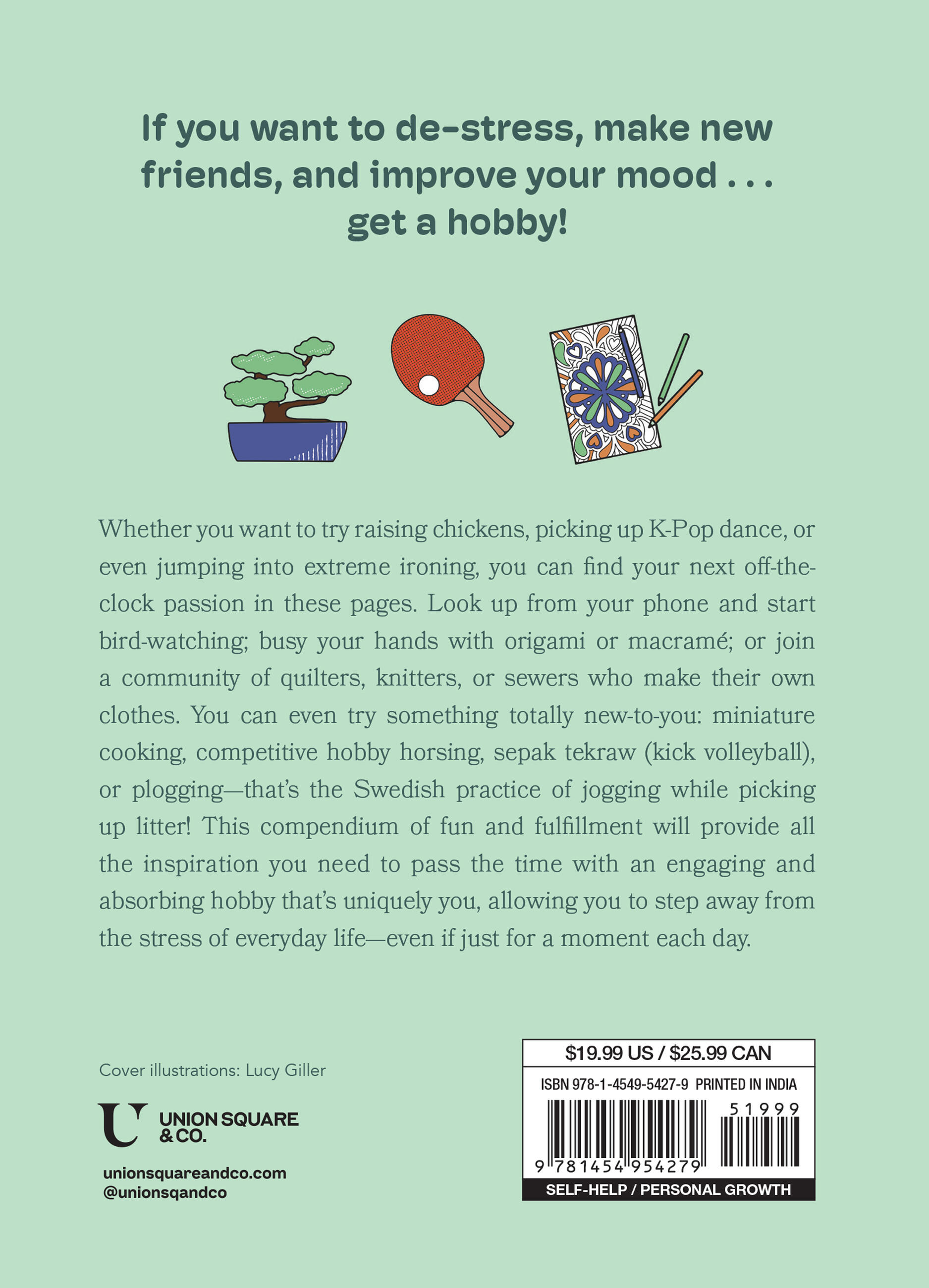 Picking up a hobby is one of the best ways to eliminate stress, improve any mood, and make a network of new friends. Whether it’s a physical activity like pickleball or martial arts; a creative pursuit like knitting or painting; or a skill to challenge the mind like sudoku or learning a language, a hobby can improve your life in so many ways. Jasmine Cho, a devoted baker whose off-the-clock passion took her from the kitchen to Food Network and beyond, presents this compendium of stuff you can do for fun in an easy-to-peruse graphic reference guide. From more familiar hobbies like quilting and bird-watching to fascinating new areas to explore like K-pop dance, extreme ironing, geocaching, and even vexillology (that’s the study of flags!), it’s impossible to stay bored when a copy of Get a Hobby is on hand.