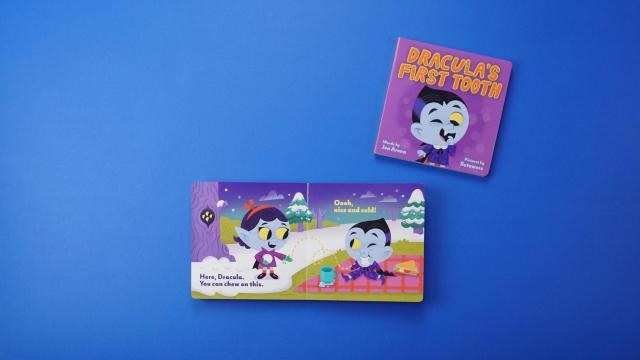 Dracula is ready for his first fang! In this board book, baby Dracula wakes up with a pain in his mouth. After trying numerous things to make the pain go away, Dracula and his parents discover his first tooth is coming in. Perfect for parents to share with young readers who are experiencing their own firsts, Dracula’s First Tooth presents an early childhood milestone through a classic literary monster.