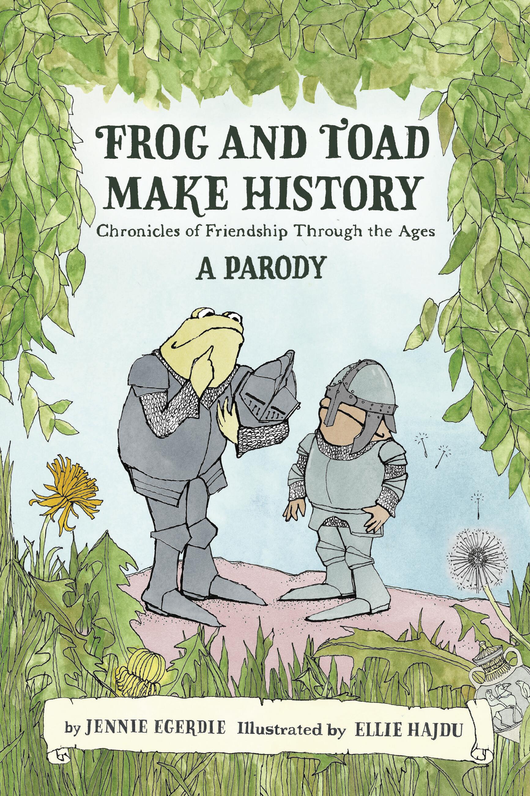 With tender-hearted humor, author Jennie Egerdie transports us away from the chaotic present day with her latest parody, Frog and Toad Make History. She channels charms of Arnold Lobel’s iconic duo as she posits how they’d react to moments throughout history, starting as cave amphibians and continuing through ancient Greece, the Middle Ages, the Industrial Revolution, and more. Together, they arrive just a little too late to take in the sights of the Roman Empire. And of course Toad of panics during the Salem Witch Trials, spotting witchcraft everywhere. When newfangled telephones arrive on the scene, Frog can’t help but think he’s doing a great service to his friend by having one installed in Toad’s home. Through these stories, it becomes clear that though the past may have been simpler times, they were no less chaotic. The key to getting by is approaching each new day with warmth, kindness, just a little bit of silliness, and—of course—having a best friend at your side.