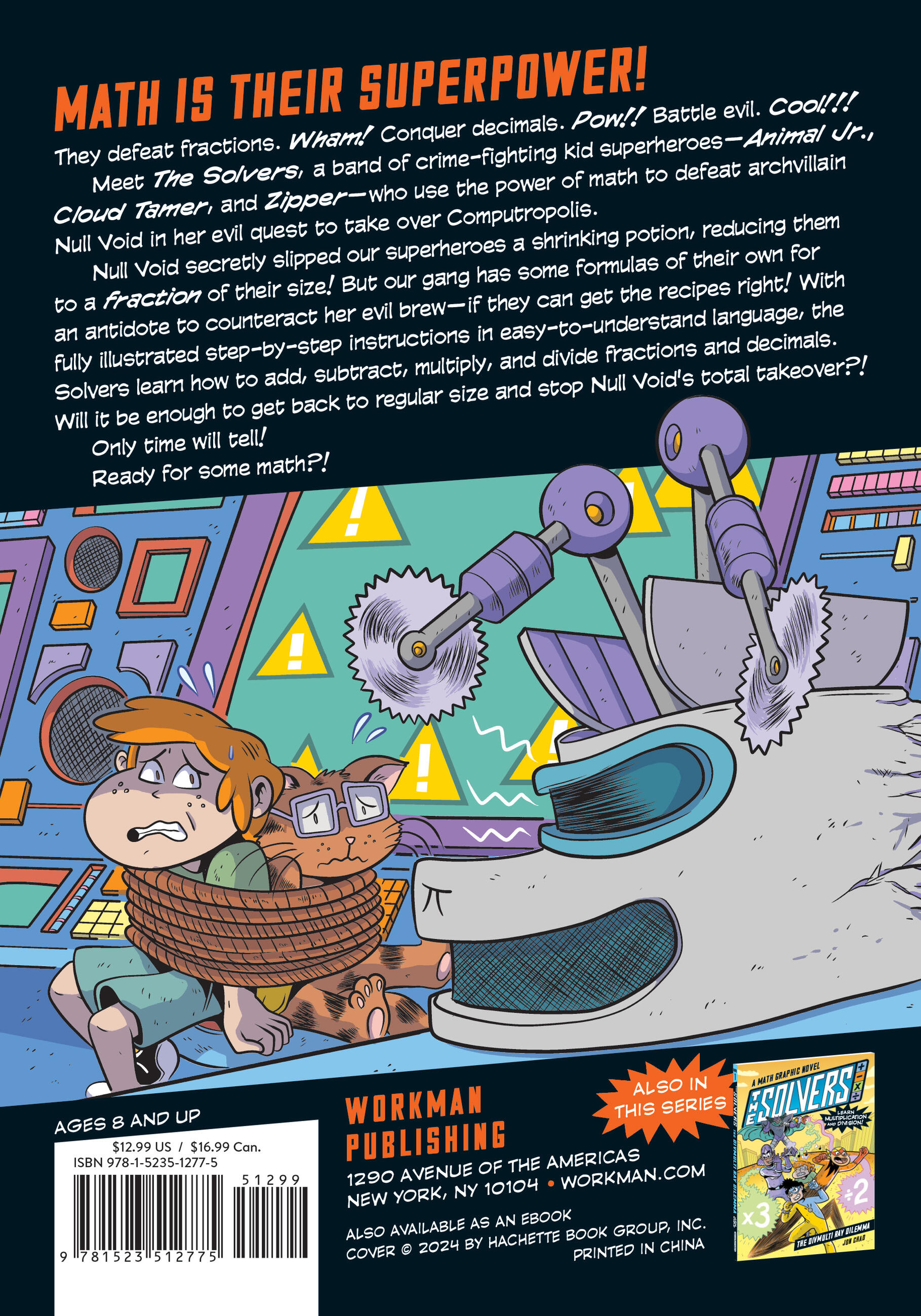 When The Solvers accidentally drink a shrinking potion, the pint-sized superheroes must learn all about fractions and decimals to mix an antidote and stop supervillain Null Void from taking over the city! Throughout the action-packed narrative, clear, step-by-step instructions and illustrated, superhero-themed examples introduce readers to fractions and decimals and then teach how to add, subtract, multiply and divide them, in a super easy-to-understand way.