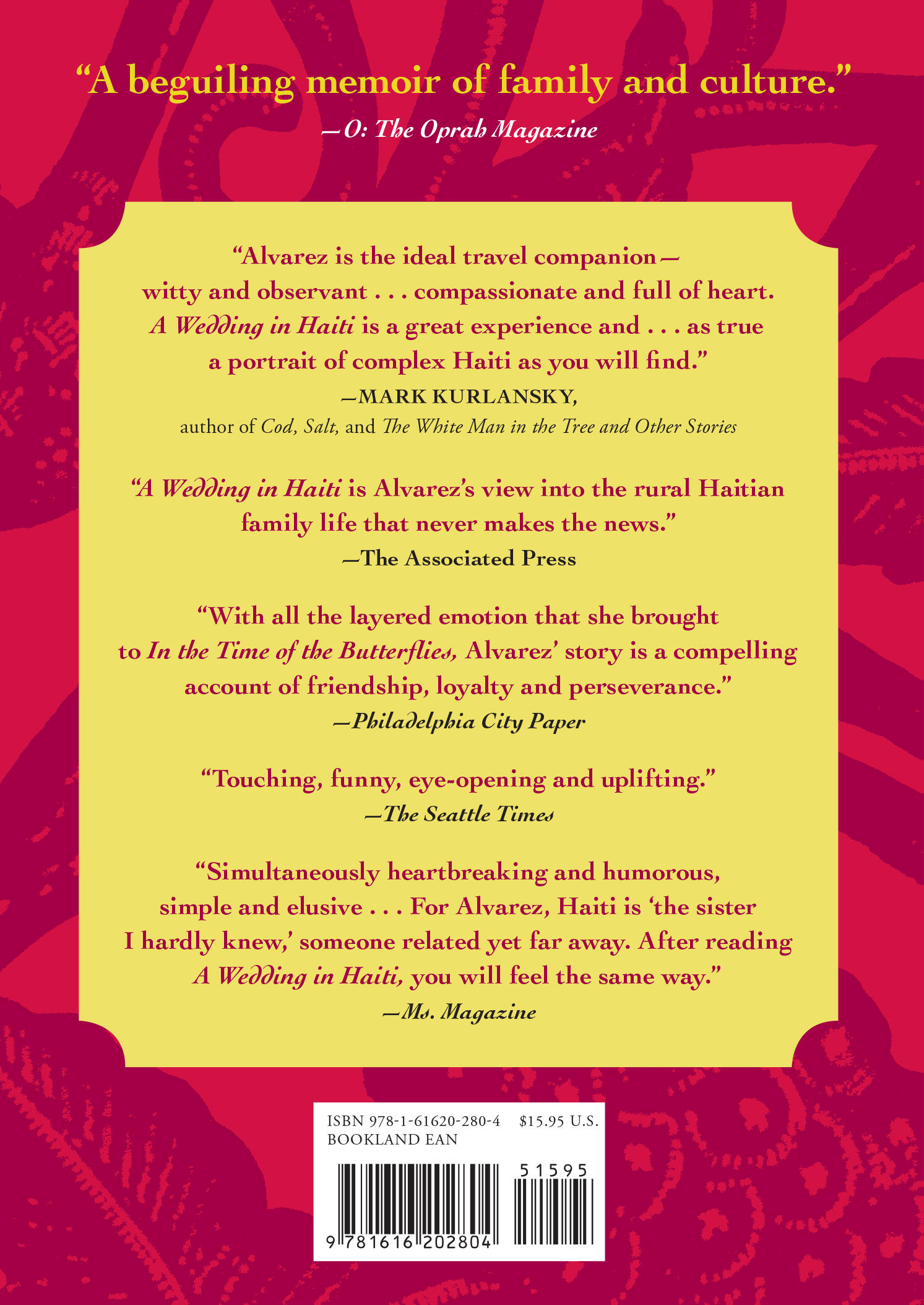 “[A] beguiling memoir of family and culture.”B>O, The Oprah Magazine“A sudden promise leads an acclaimed author on the journey—and to the wedding—of a lifetime . . . [An] extraordinary story.”B>Marie Claire“An open-eyed view of Haiti before and after the earthquake . . . A Wedding in Haiti is Alvarez's view into the rural Haitian family life that never makes the news.”B>The Associated Press“Award-winning Dominican writer Julia Alvarez finally, sweetly, gets to know her sister country as she travels to a friend’s fete.”B>Ebony “Alvarez’s devotion, her admiration and hope, and most clearly, the love for her extended family, is palpable throughout.”B>The Christian Science Monitor “Heartbreaking and humorous, simple and elusive.” B>Ms. Magazine blog“A moving message about the nature of poverty, human love, and their opposites.”Booklist