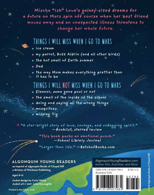 My name is Mischa “Ish” Love, and I am twelve years old. I know quite a lot about Mars.Mars is where I belong. Do you know how sometimes you just know a thing? My mom says that falling in love is like that, that the first time she saw Dad, she just knew. That’s how I feel about Mars: I just know.