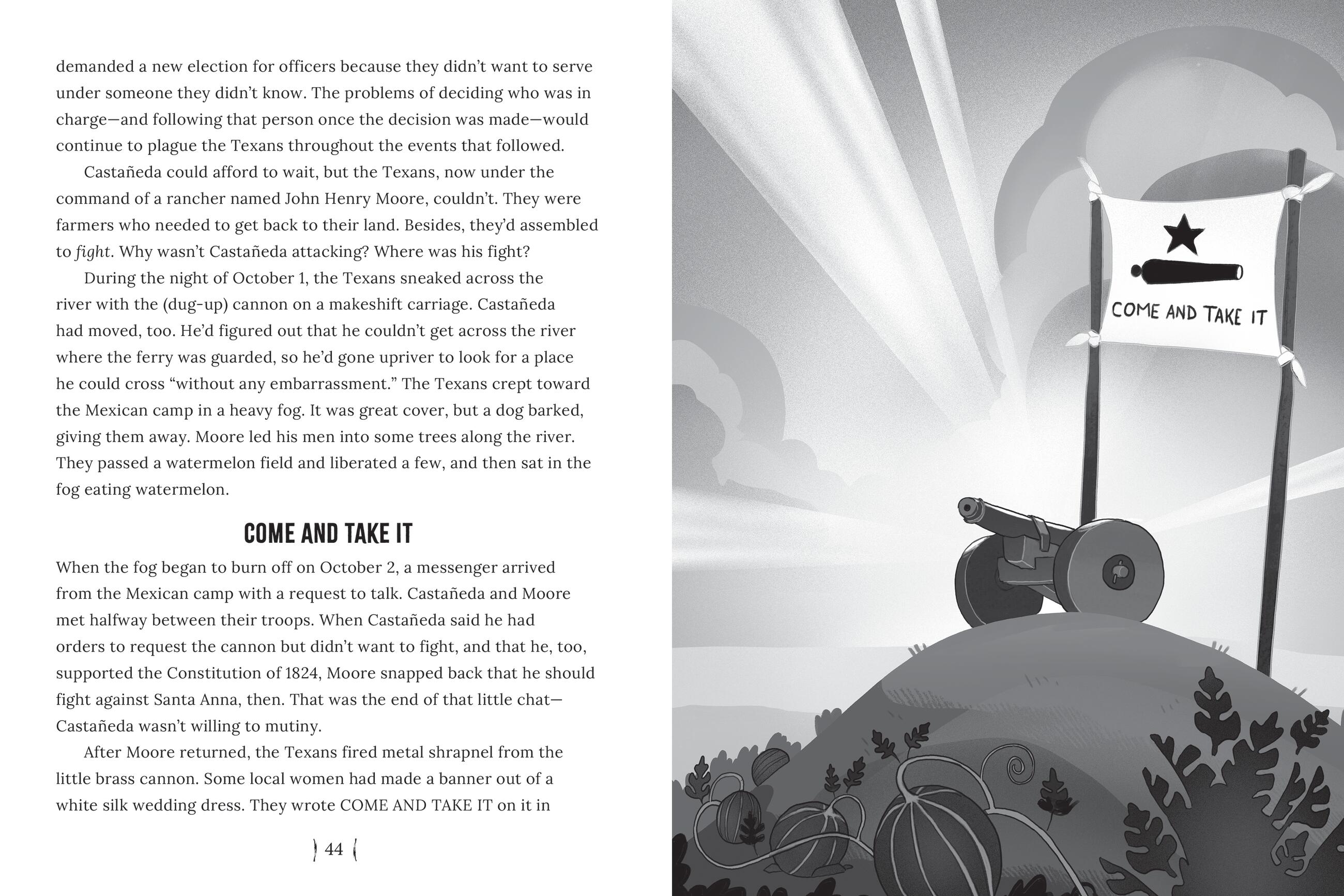 The Mexican government wasn’t so sure about that. But as more and more settlers moved in, the big personalities, rash decisions, and grand proclamations piled up. When these new “Texians” decided to declare independence, fighters like William Travis, Jim Bowie, and David Crockett came forward to resist the proud General Antonio López de Santa Anna and his army. They would face off at an old church in San Antonio, known as the Alamo.