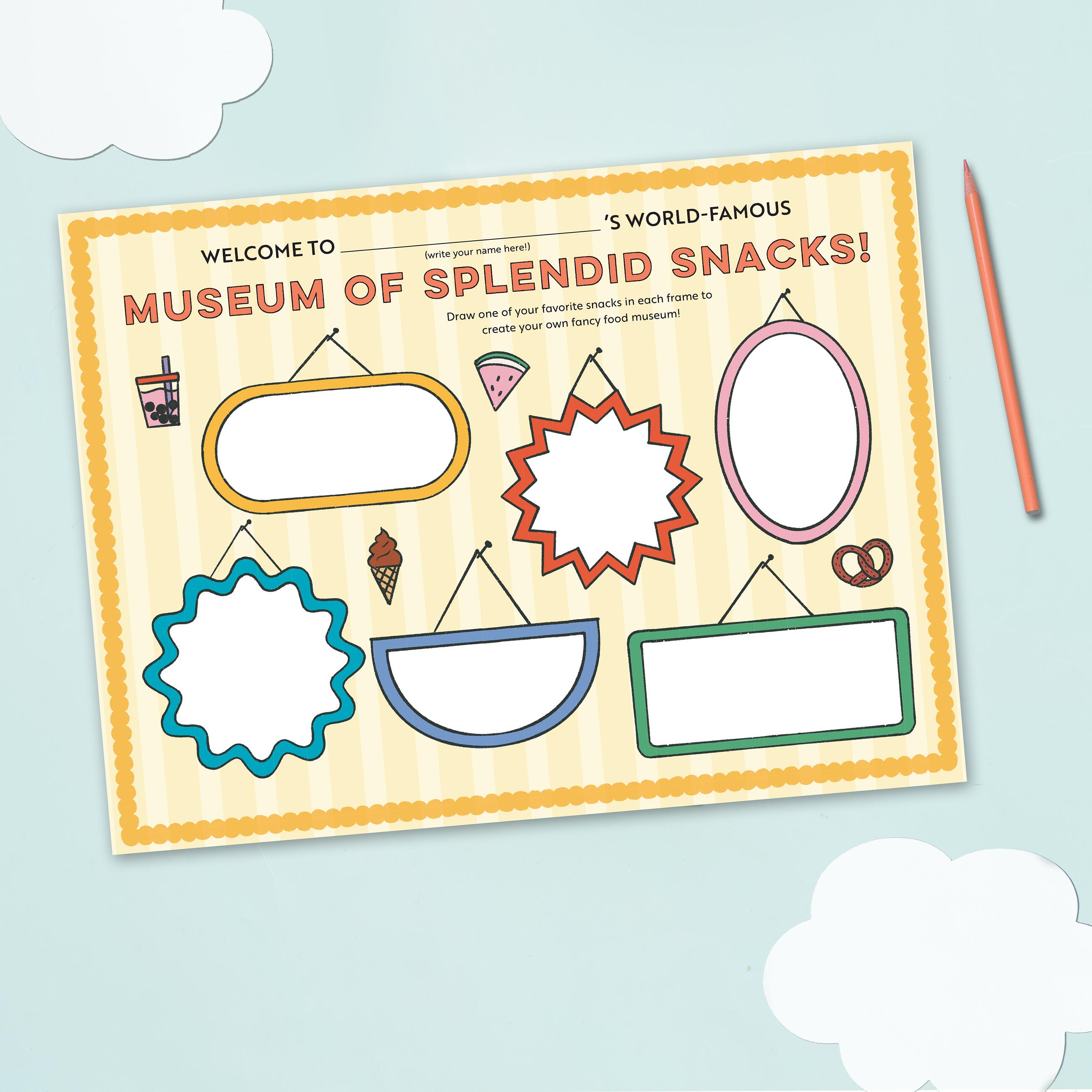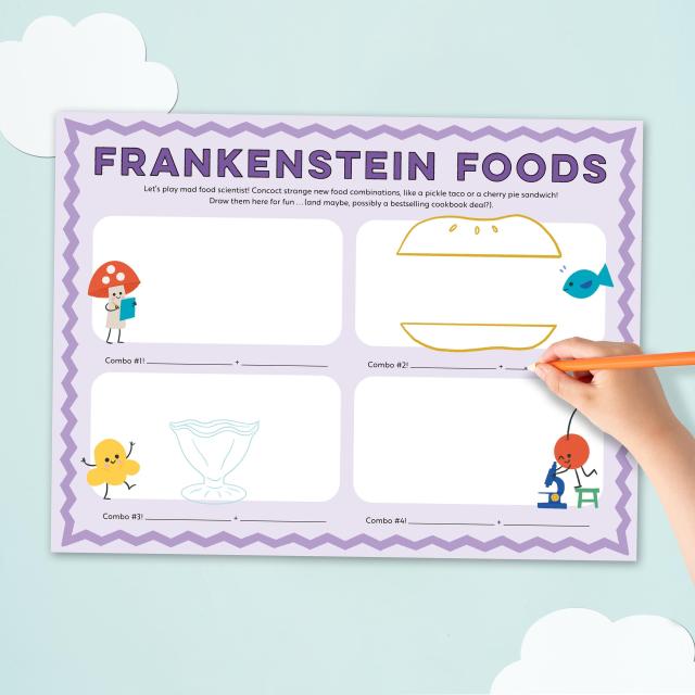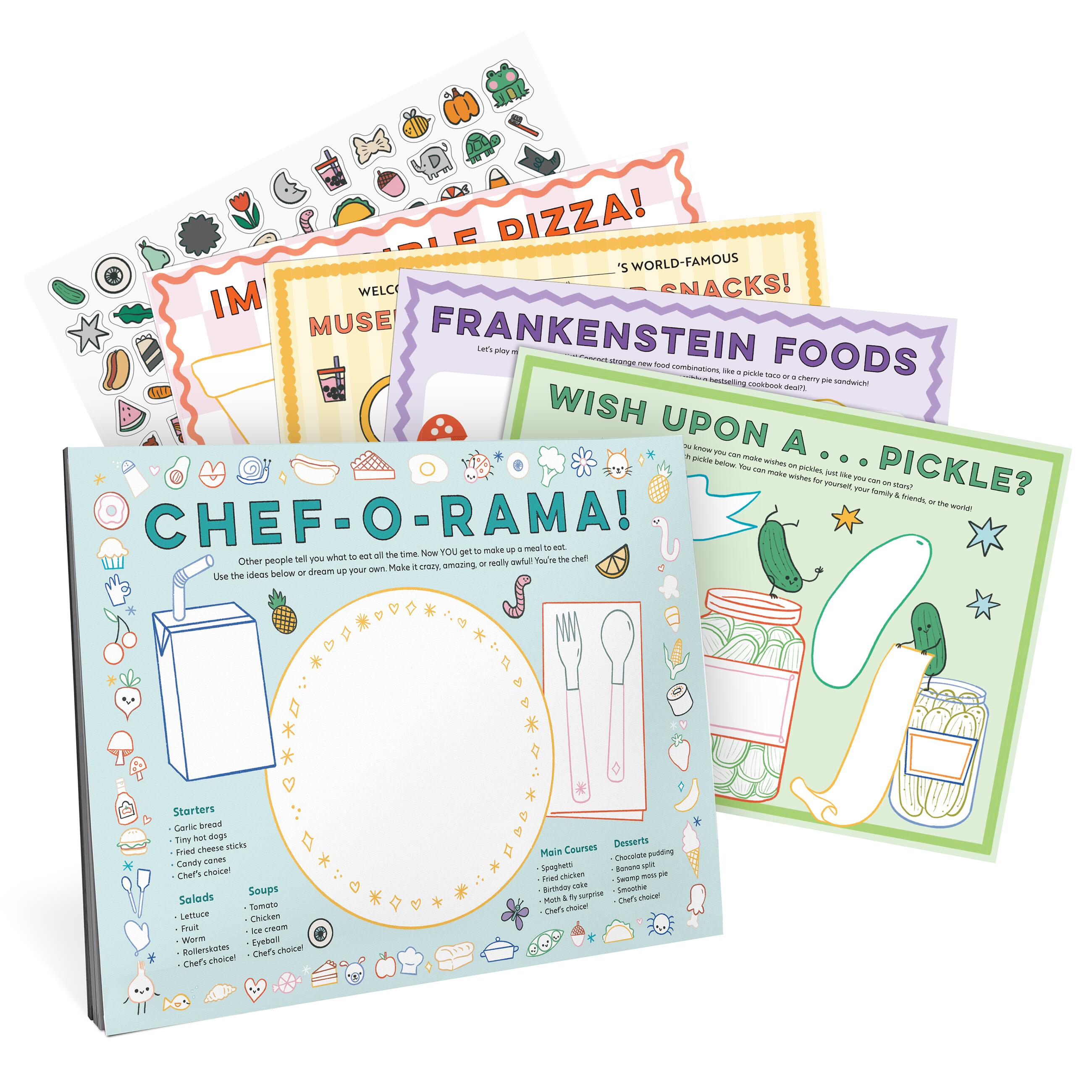 Featuring five rotating activity sheets that encourage kids to draw, color, imagine, and play—all with a deliciously fun twist on food and creativity!