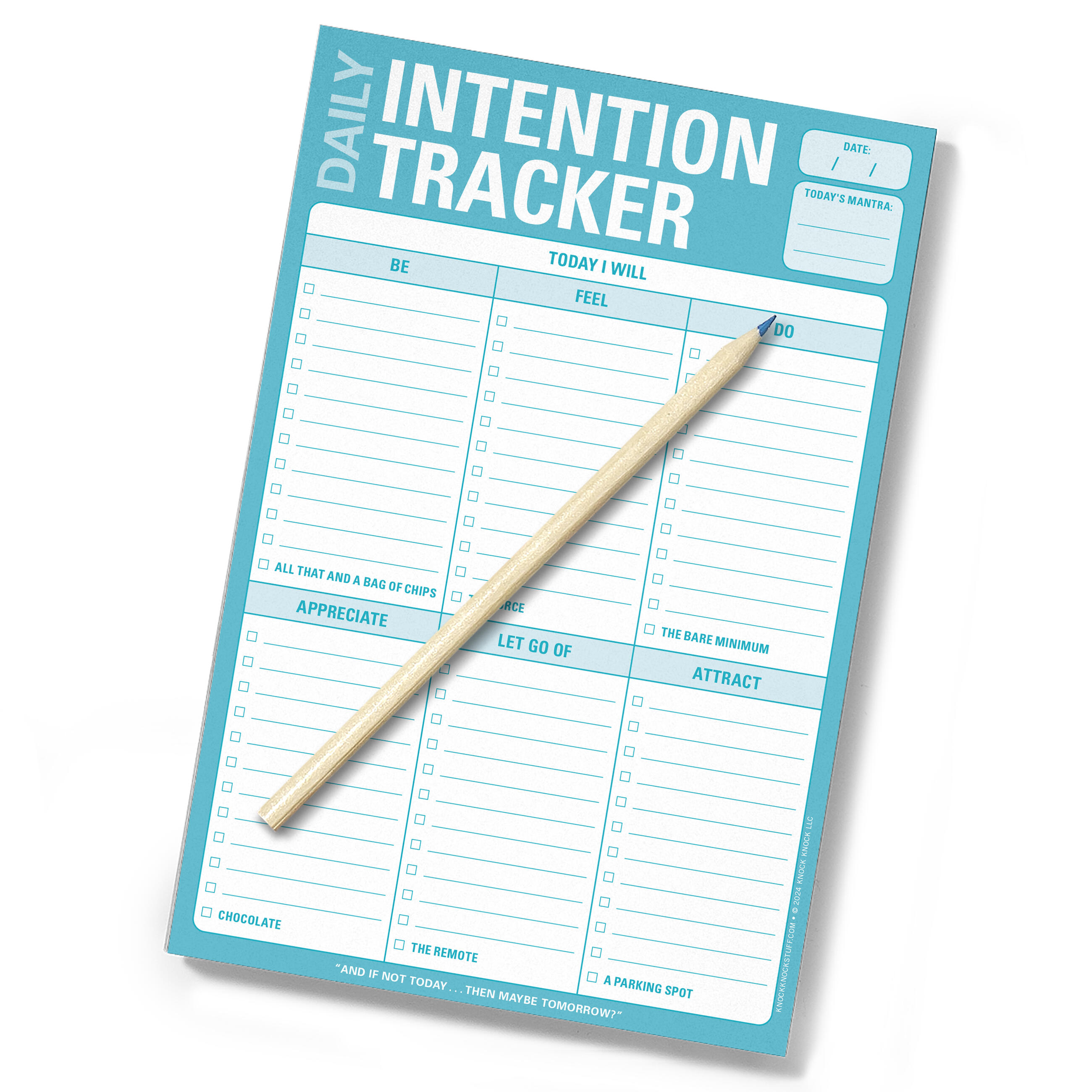 You start the day off with so many good intentions—where do they all go? With this goal tracking pad, you’ll never lose sight of those lofty aspirations. Your karma is covered, whether you want to attract positive energy or just get rid of household clutter.