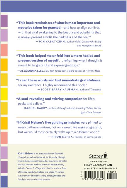 “The most valuable spiritual guidebooks are grounded in the writer's personal awakening. Cancer taught Kristi Nelson to accept the uncertainty and impermanence of life, and through that she discovered gratefulness as a path to healing and wholeness. Now she offers it to us, and it is a blessing to receive.” — Mirabai Bush, Senior Fellow, Center for Contemplative Mind in Society and coauthor of Walking Each Other Home: Conversations on Loving and Dying