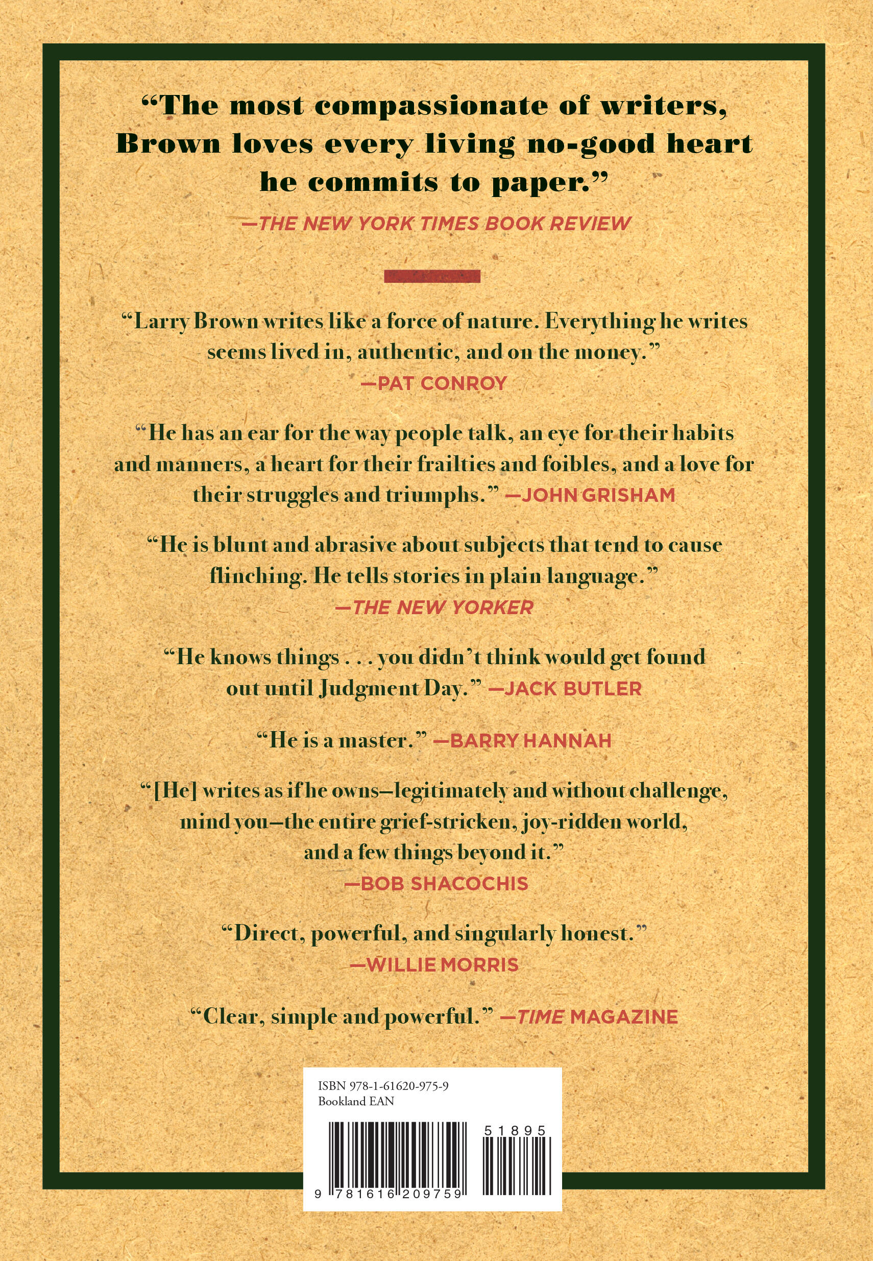 “Larry Brown wrote the way the best singers sing: with honesty, grit, and the kind of raw emotion that stabs you right in the heart. He was a singular American treasure.” —Tim McGraw