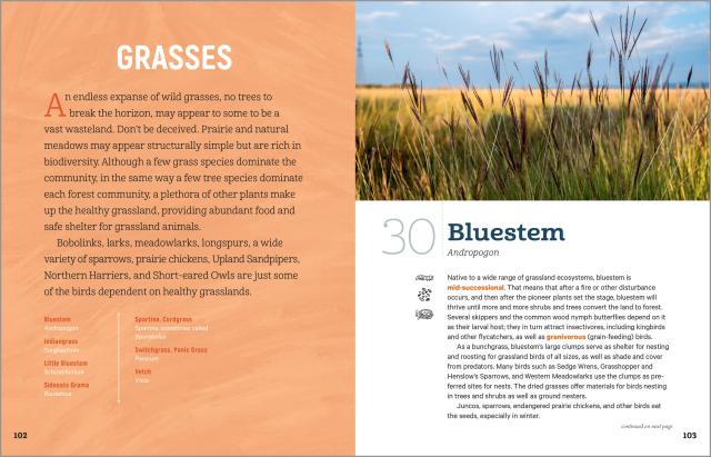 This guide offers in-depth planting and care information for 100 native plant species that feed and shelter birds all year long, including during breeding and migrating periods. Some of these plants can be added to your garden, some are helpful wild plants to avoid weeding, and some are trees that you can plant.