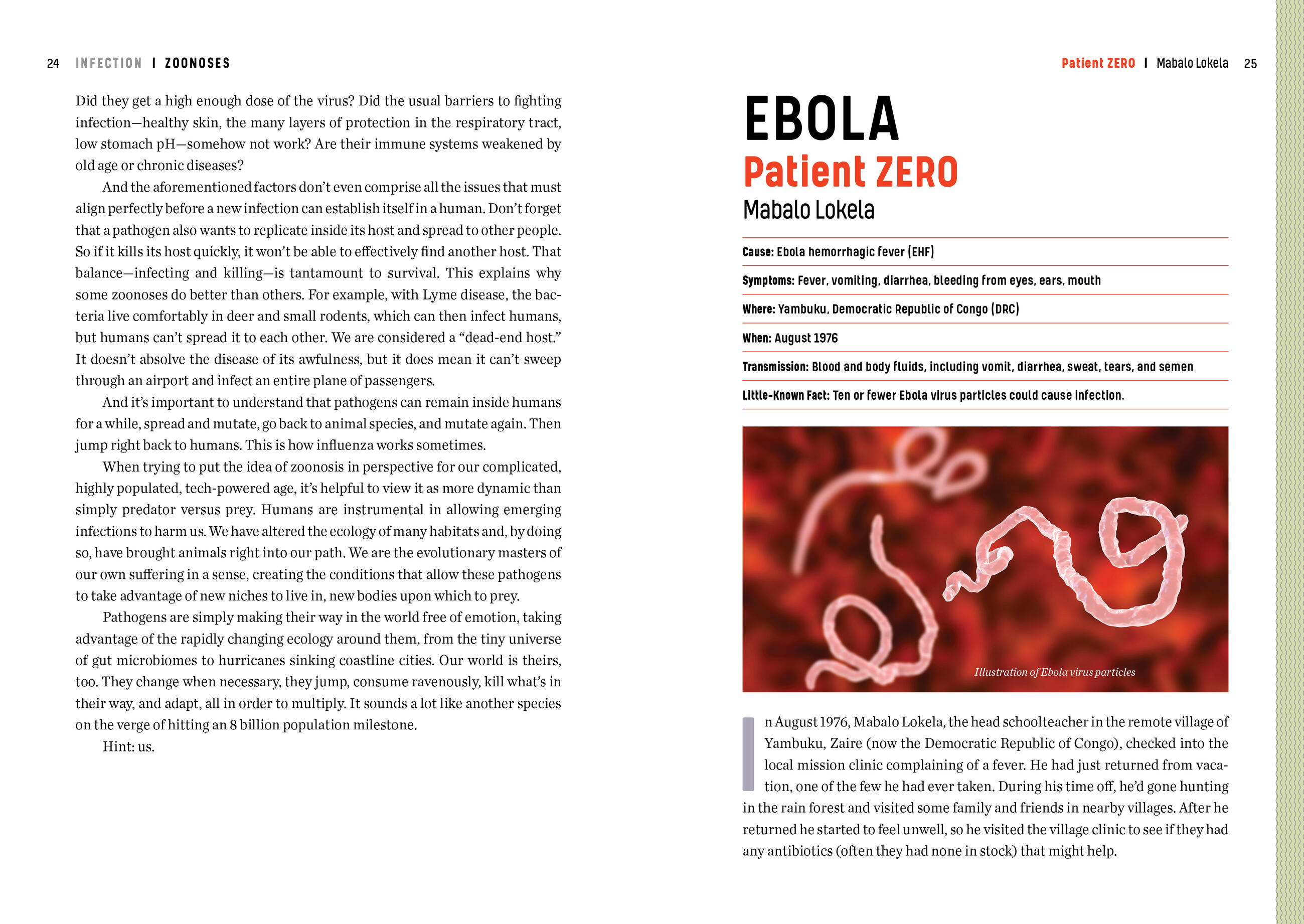 Learn the tragic stories of Patient Zeros throughout history, such as Mabalo Lokela, who contracted Ebola while on vacation in 1976, and the Lewis Baby on London’s Broad Street, the first to catch cholera in an 1854 outbreak that led to a major medical breakthrough. Interspersed are origin stories of a different sort—how a rye fungus in 1951 turned a small village in France into a phantasmagoric scene reminiscent of Burning Man. Plus the uneasy history of human autopsy, how the HIV virus has been with us for at least a century, and more.