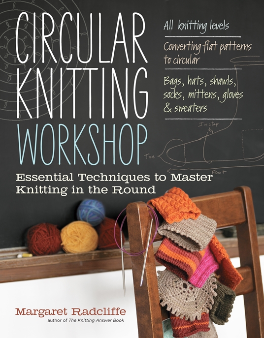 Circular knitting can seem intimidating to beginning knitters, but author Margaret Radcliffe soothes those fears. Circular Knitting Workshop discusses every aspect of circular knitting, from cast on methods to converting patterns written for straight needles to circular. Beginners will appreciate the simple pain-free lessons in knitting in the round using circular needles, double-points, or the Magic Loop method. Lessons in Fair Isle, twined, helix, and tubular knitting are also presented for advanced knitters. Mini projects are included for you to try out your new skills before tackling full-sized projects. Whether you’re just starting out in circular knitting or looking for a quick answer, this book will quickly become your go-to guide for knitting in the round.