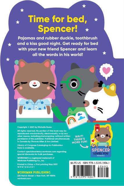 Here are Spencer’s pajamas and rubber duckie, toothbrush and a kiss good night. Get ready for bed with your new friend Spencer and learn all the words in his world!