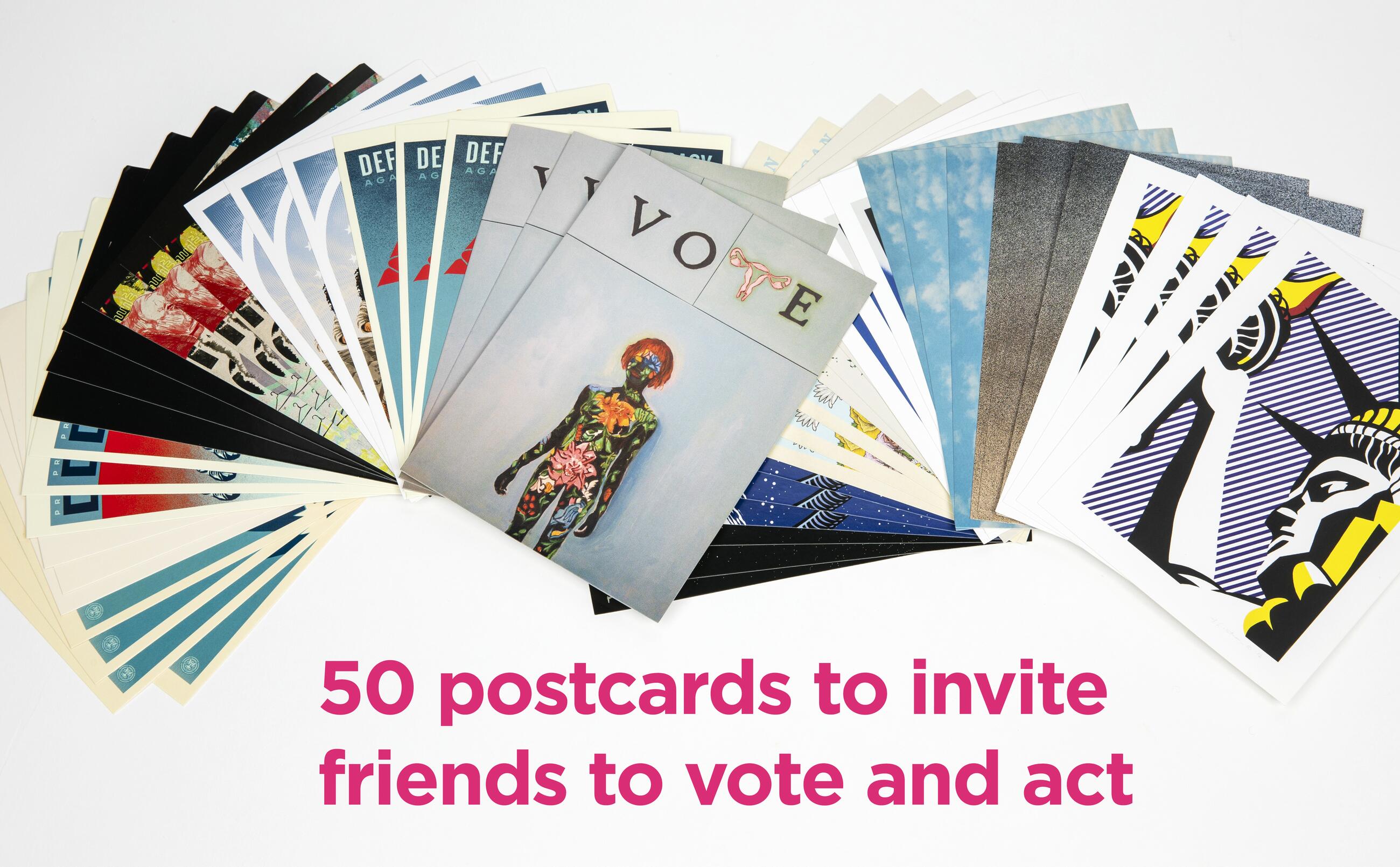- 50 postcards that can be used to urge friends to vote or be part of a postcard-writing campaigns