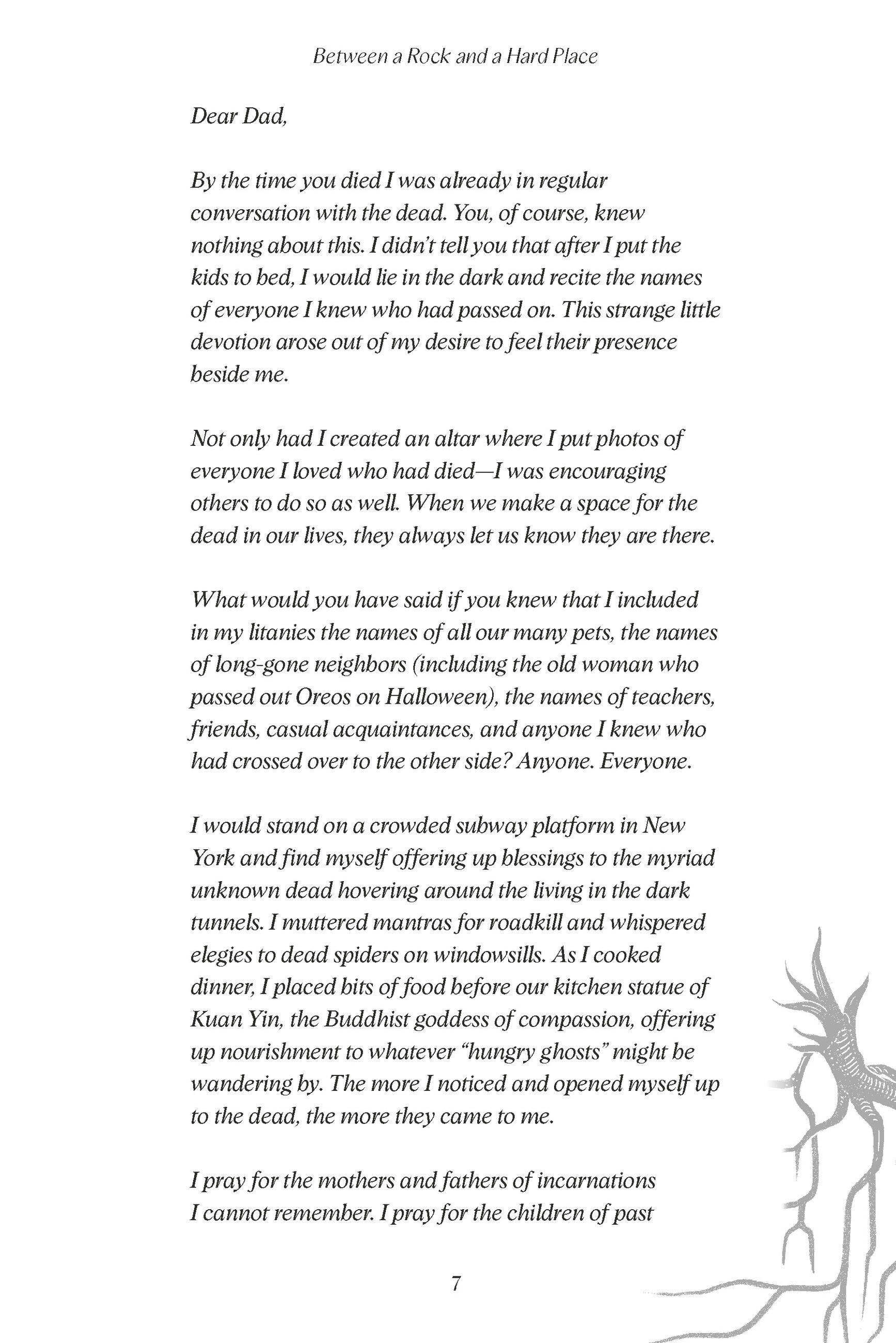 “Mixing vivid memories of her own spiritual journey, open letters to her father, and advice to help readers commune with their ancestors’ spirits . . . . Finn weaves a spellbinding meditation on how time never runs out for the deceased in prose that alternately enchants and haunts (“Were all of us, the living and the dead, hungry ghosts, prowling the Earth with mouths too small to ever fill our hearts with enough?”). It’s an affecting ode to the power of the unseen.”Publishers Weekly