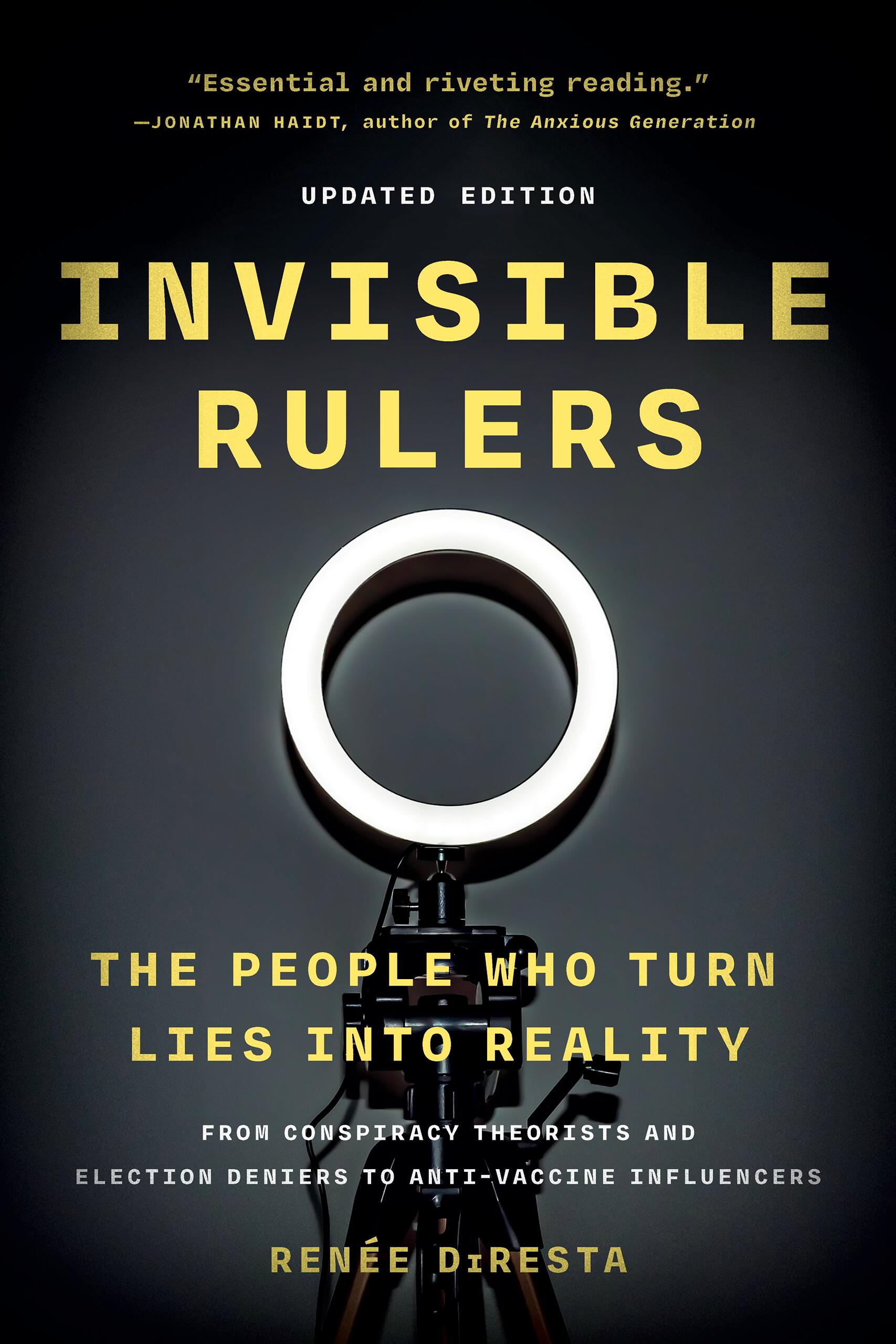 “I am in awe of DiResta’s ability to see through the digital haze and identify many of the most important threats coming at the United States and humanity more broadly. As AI supercharges social media and the power of conspiracy theorists, foreign intelligence agencies, and all who would turn lies into reality, we are so fortunate that DiResta shares her hard-won knowledge with us—and her battle scars. Invisible Rulers is essential and riveting reading.”Jonathan Haidt, New York Times bestselling author of The Anxious Generation