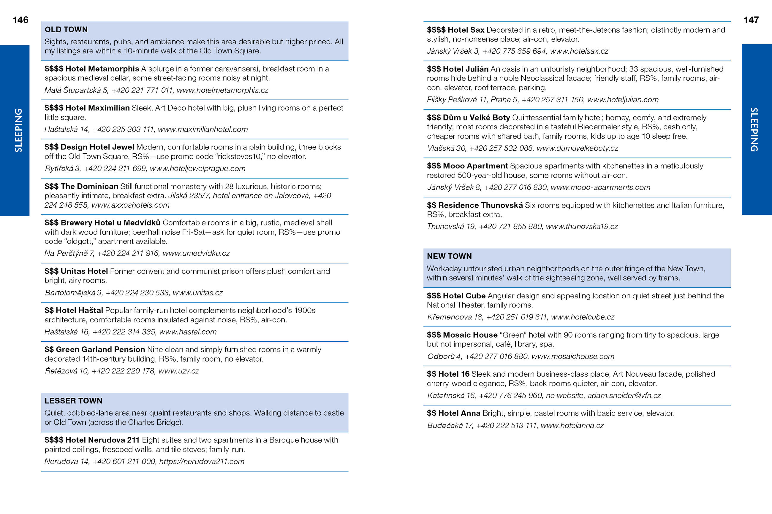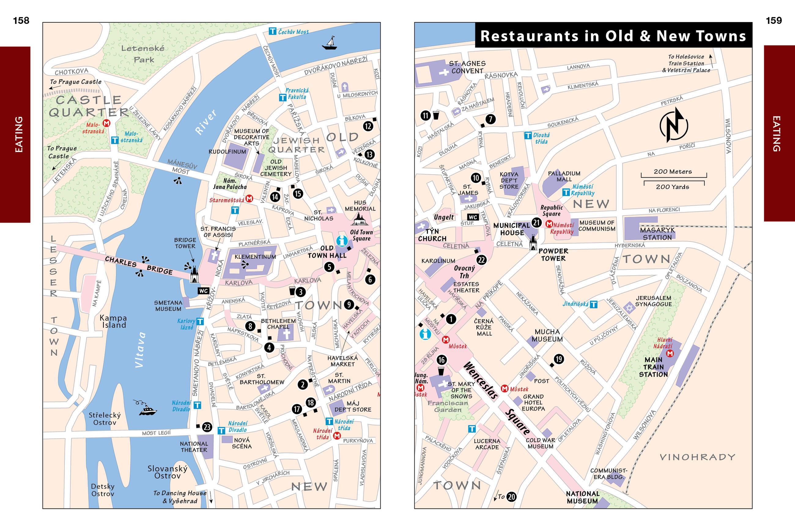 • City walks and tours: Five detailed self-guided walks, including a walk from the Old Town Square to the Charles Bridge and tours of the Jewish Quarter and Prague Castle