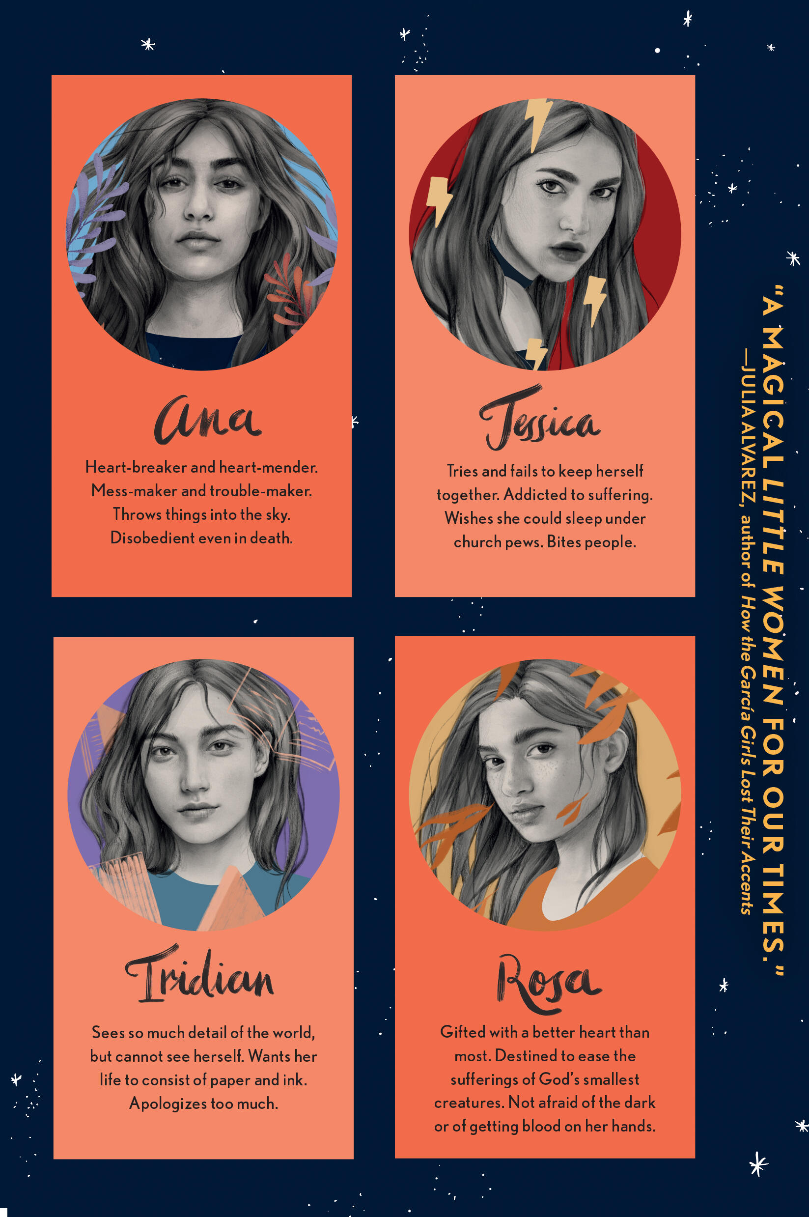 “Move over, Louisa May Alcott! Samantha Mabry has written her very own magical Little Women for our times. This is no family of tamed girls but a clan of fierce and fighting young women who will draw readers into their spell. A celebration of the bonds of sisterhood and of the ways we heal by reaching beyond our losses, our brokenness and fears to the love that holds and heals.”Julia Alvarez, author of How the García Girls Lost Their Accents