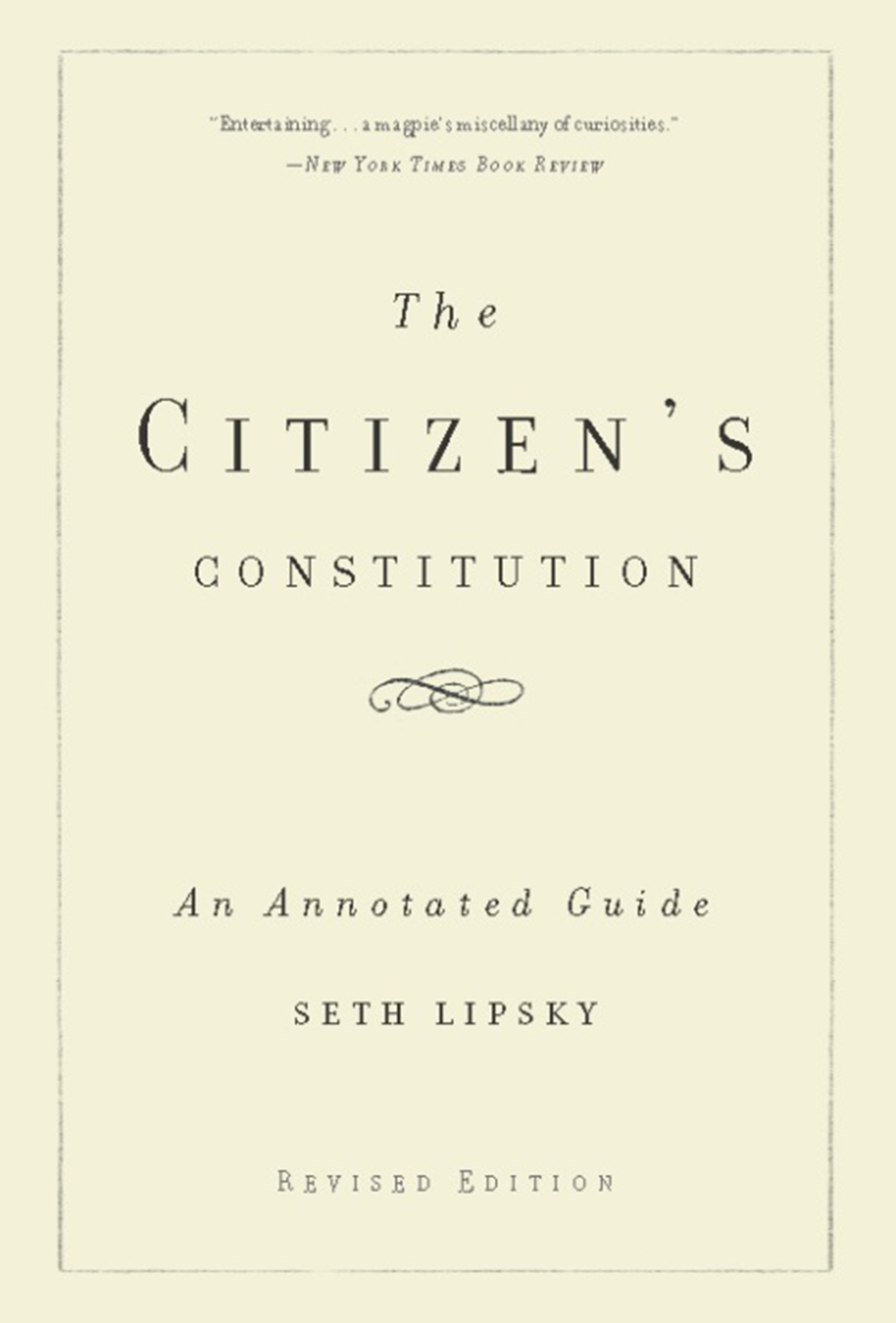 “Whether you are a constitutional conservative or liberal, you need to start your thinking with what the words of the document meant when they were written and how their definition has changed in time. Seth Lipsky's annotated constitution is an invaluable resource for this purpose. With rigorous scholarship and delightful wit, Lipsky takes us through the nation's founding document, phrase by phrase. Though The Citizen’s Constitution is written to be understood by non-lawyers, I would be surprised if most lawyers don't learn a thing or two reading it. I certainly did.”