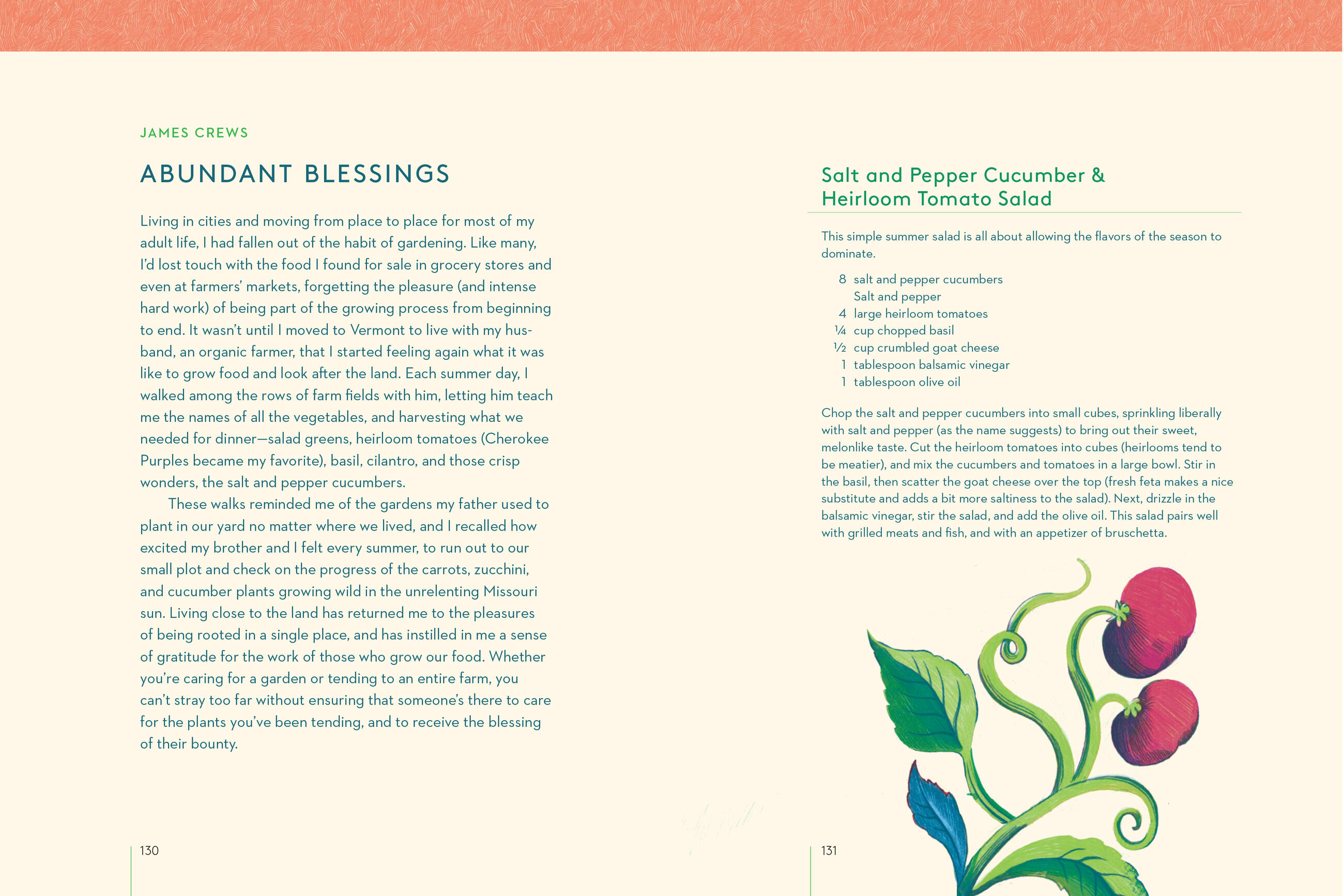 “This collection brings together many of my favorite writers to celebrate the limitless offerings of nature; wandering through its pages feels like taking a long stroll through a beautiful garden.”Alice Waters, chef, author, food activist, and founder of Chez Panisse and the Edible Schoolyard Project