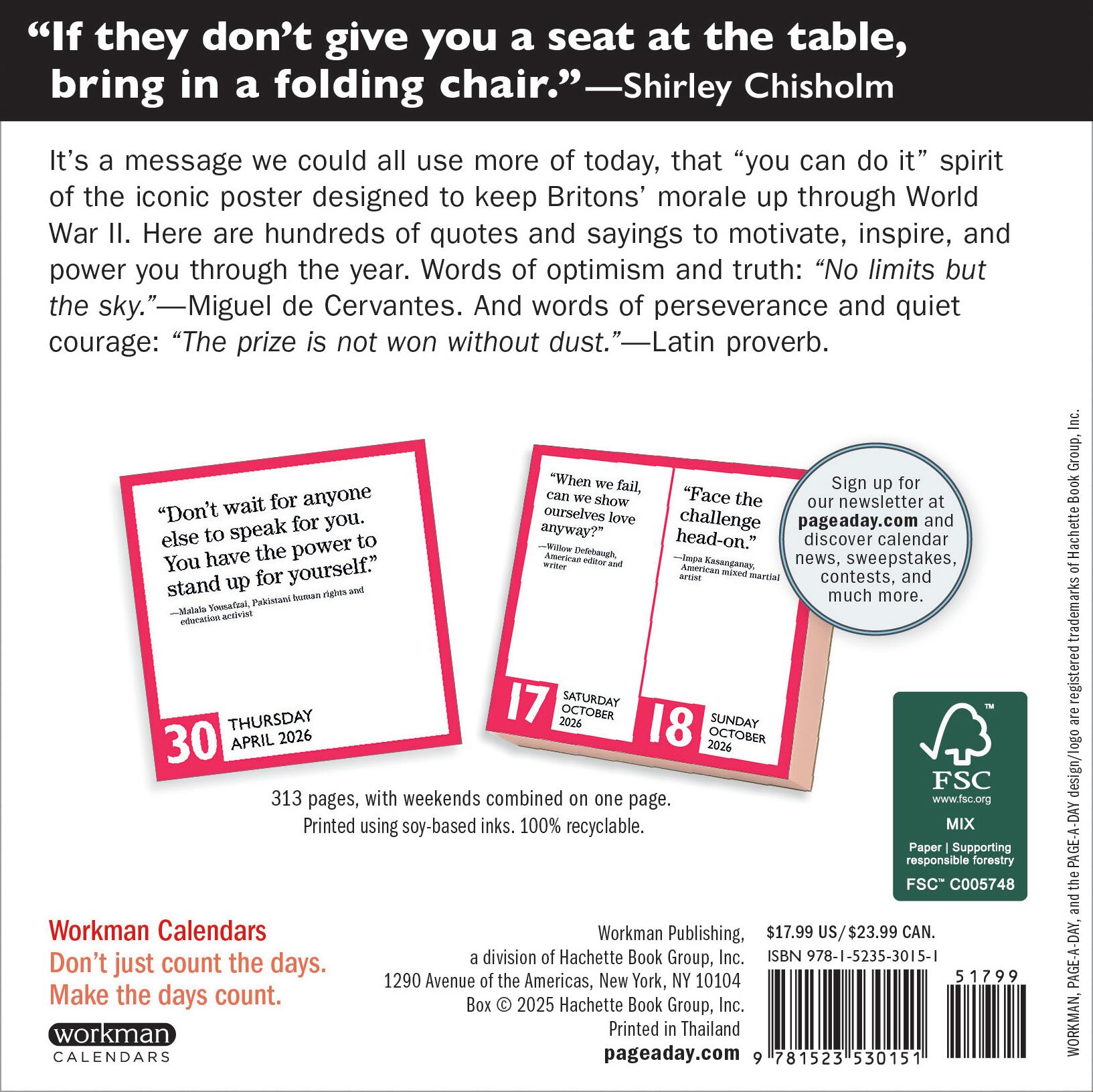 - STIFF UPPER LIP: We could all use more of the “you can do it” spirit of the iconic poster designed to keep Britons’ morale up through World War II. This calendar contains hundreds of quotes and sayings to motivate, inspire, and power you throughout the year.