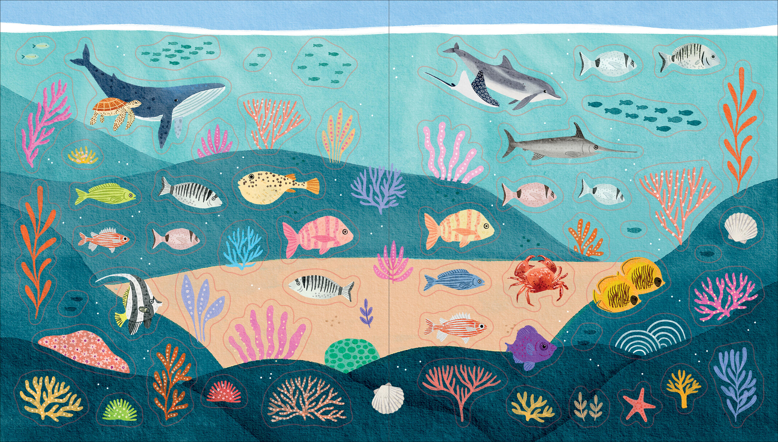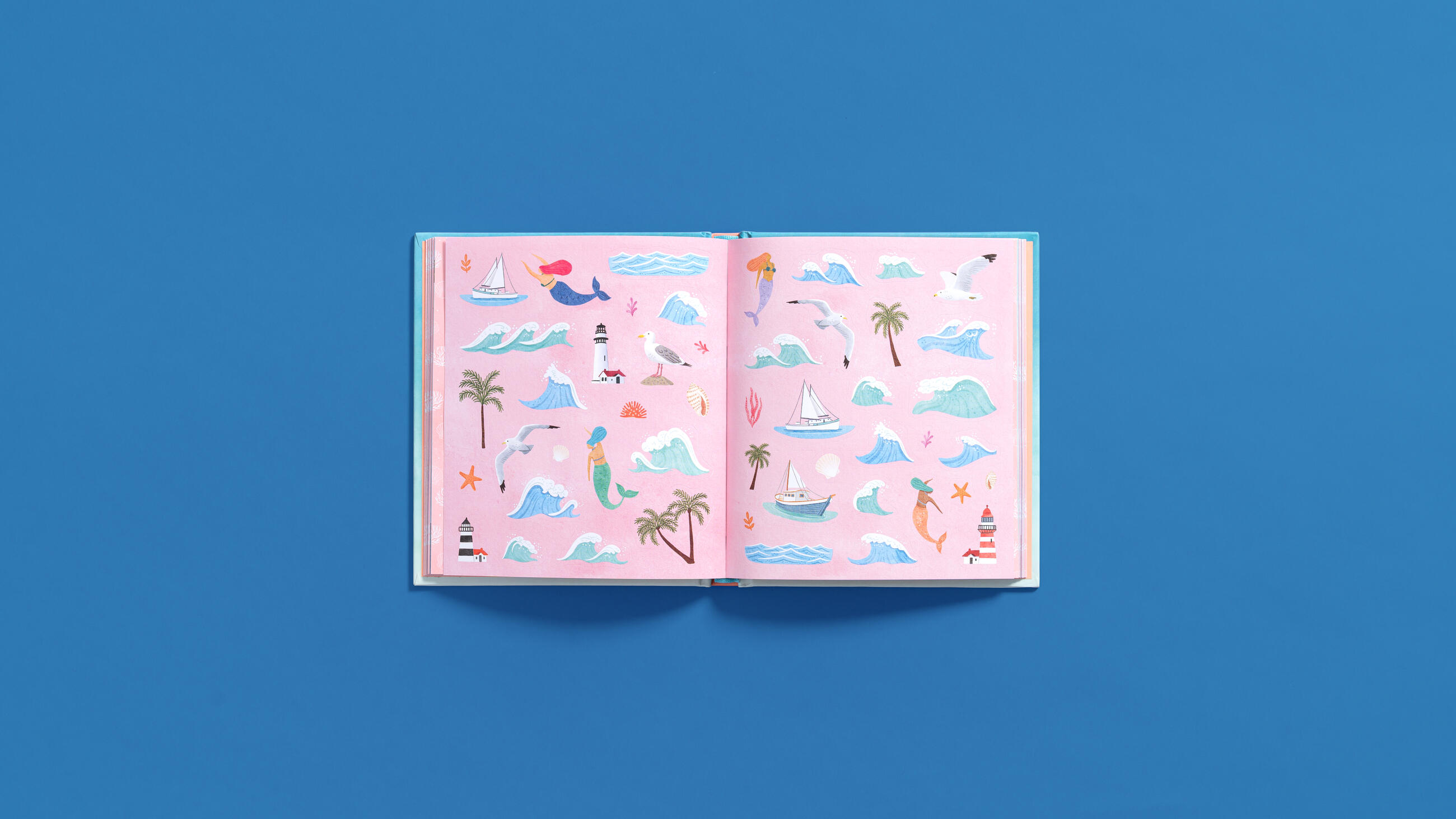 Wade into the deep end with this stunning collection of hundreds of illustrated stickers, each one a celebration of the vast, majestic, and mysterious ocean. There’s a scattering of intricately detailed seashells of all shapes and sizes; sea turtles swim playfully with their babies; graceful dolphins jump and glide through the waves; and much more.