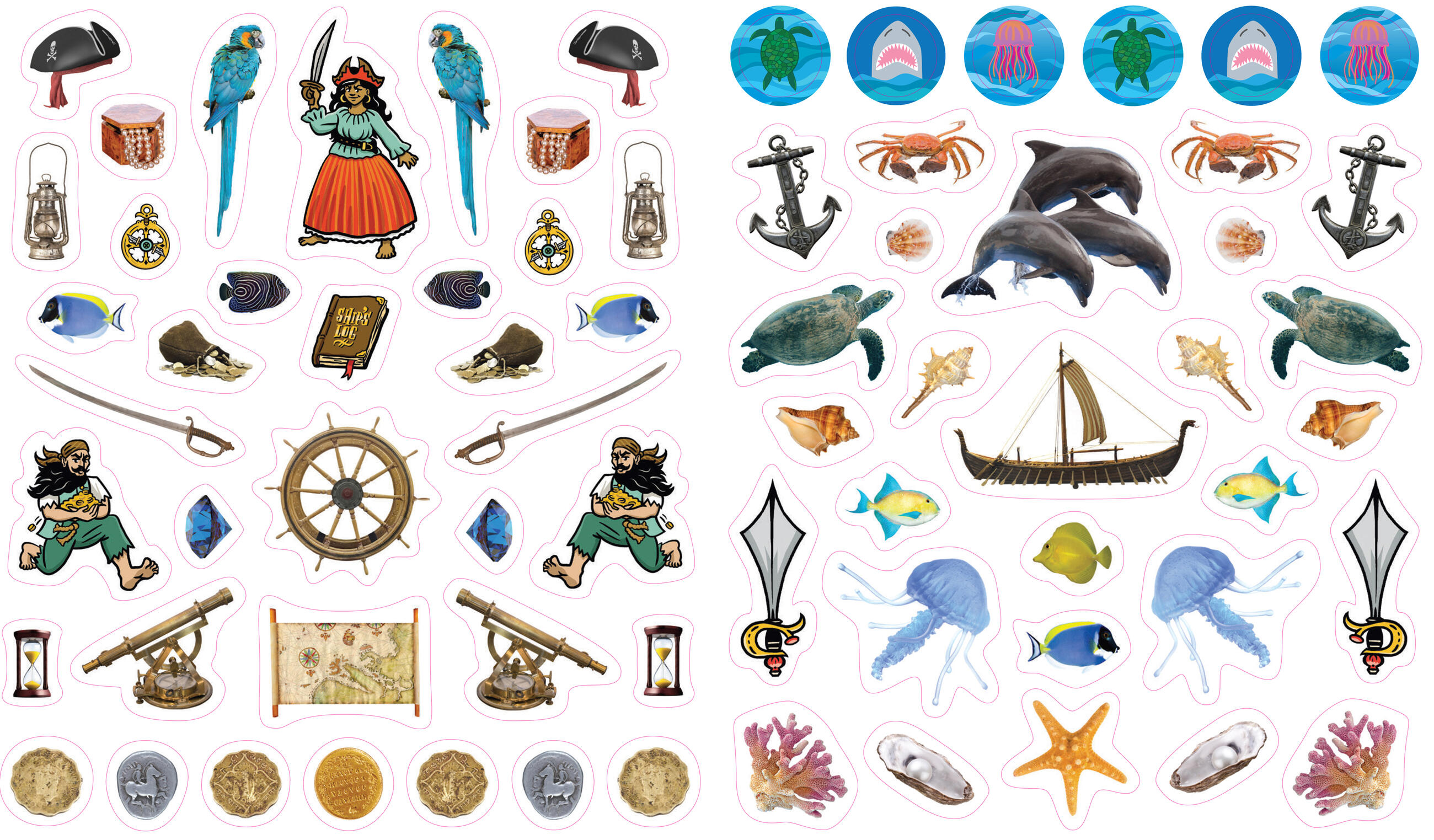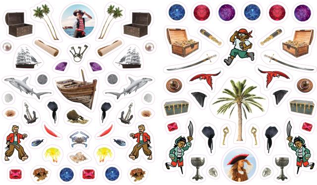 Enjoy over 400 irresistible, reusable, and collectible stickers to mix, match, and trade with this wonderful addition to the bestselling Eyelike Stickers series, filled with sailboats, anchors, jewels, maps, swords, jellyfish, dolphins, sea turtles, and, of course, pirates!